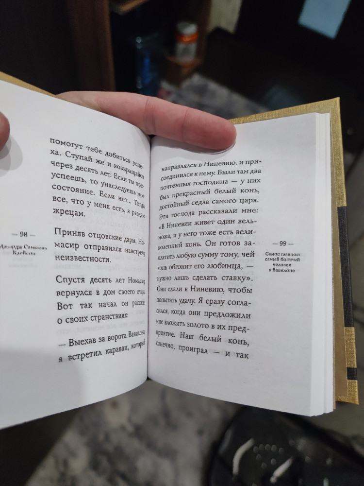 сокращённая версия книги, для напоминания и быстрого перечитывания. Н утомительное чтиво. Между книгами для вникания в самый раз. Легкая по тексту самое сложное - это имена))): Алгамеш, Аркад, Бансир. Любителям коротких поучительных притч - в коллекцию!