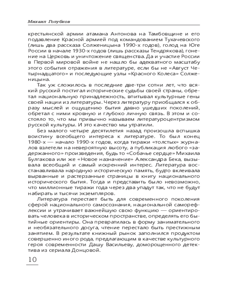 | Михаил Михайлович Голубков — доктор филологических наук, профессор филологического факультета МГУ имени М. В. Ломоносова, автор книг о российских писателях и учебников по литературе и литературной критике для школ и вузов. Родился 11 февраля 1960 года в Москве. Окончил филологический факультет МГУ в 1982 году по специальности «русский язык и литература». Область научных интересов — русский литературный процесс 1920–1950-х годов, история литературной критики 1920–1990-х годов, современная... |