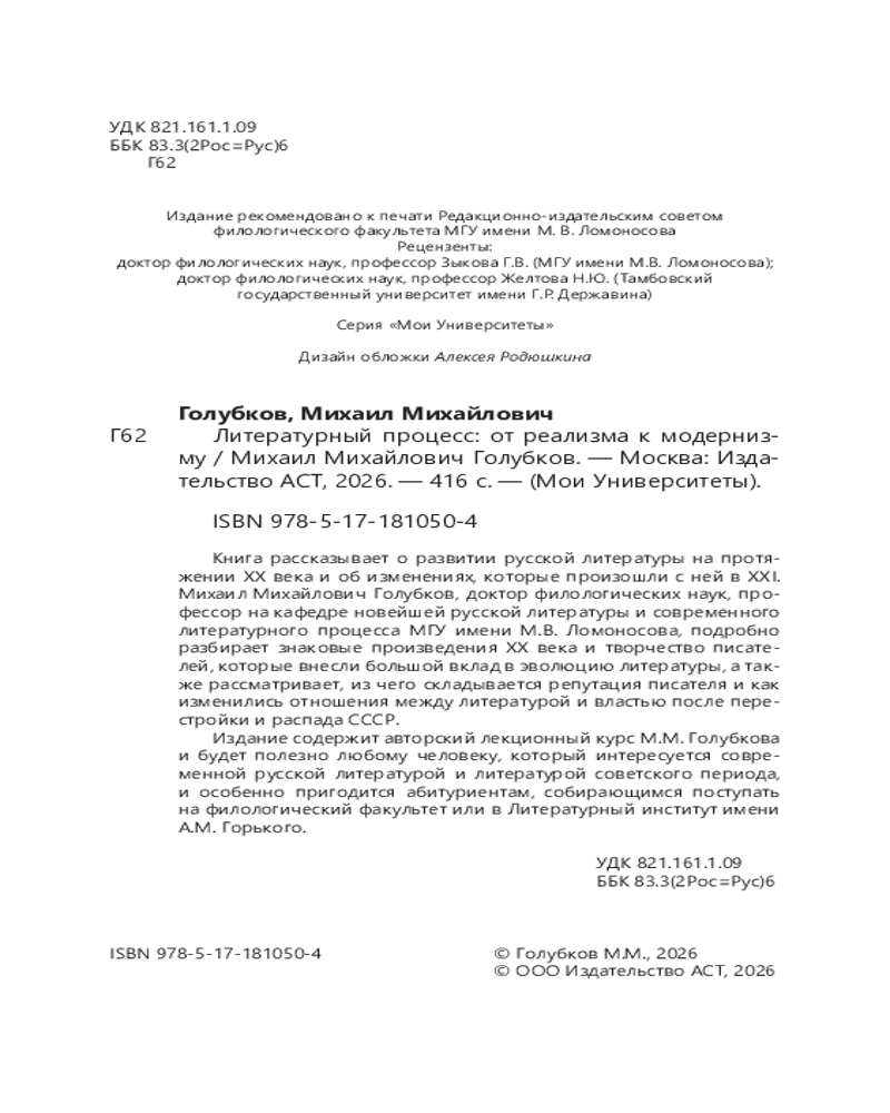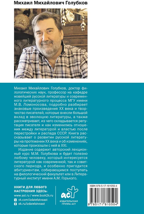 💳 Оплатить за товар можно при получении 🇰🇿 Есть бесплатная доставка по Казахстану от 1 дня 🎁 Копите бонусы с каждой покупки Серия: Мои Университеты Книга рассказывает о развитии русской литературы на протяжении ХХ века и об изменениях, которые произошли с ней в XXI. Михаил Михайлович Голубков, доктор филологических наук, профессор на кафедре новейшей русской литературы и современного литературного процесса МГУ имени М.В. Ломоносова, подробно разбирает знаковые произведения ХХ века и творчество писателей, которые внесли большой вклад в эволюцию литературы, а также рассматривает, из чего складывается репутация писателя и как изменились отношения между литературой и властью после перестройки и распада СССР. |