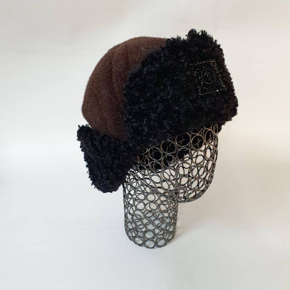 Мини-ушанка женская с короткими ушками на кнопках «Комби»