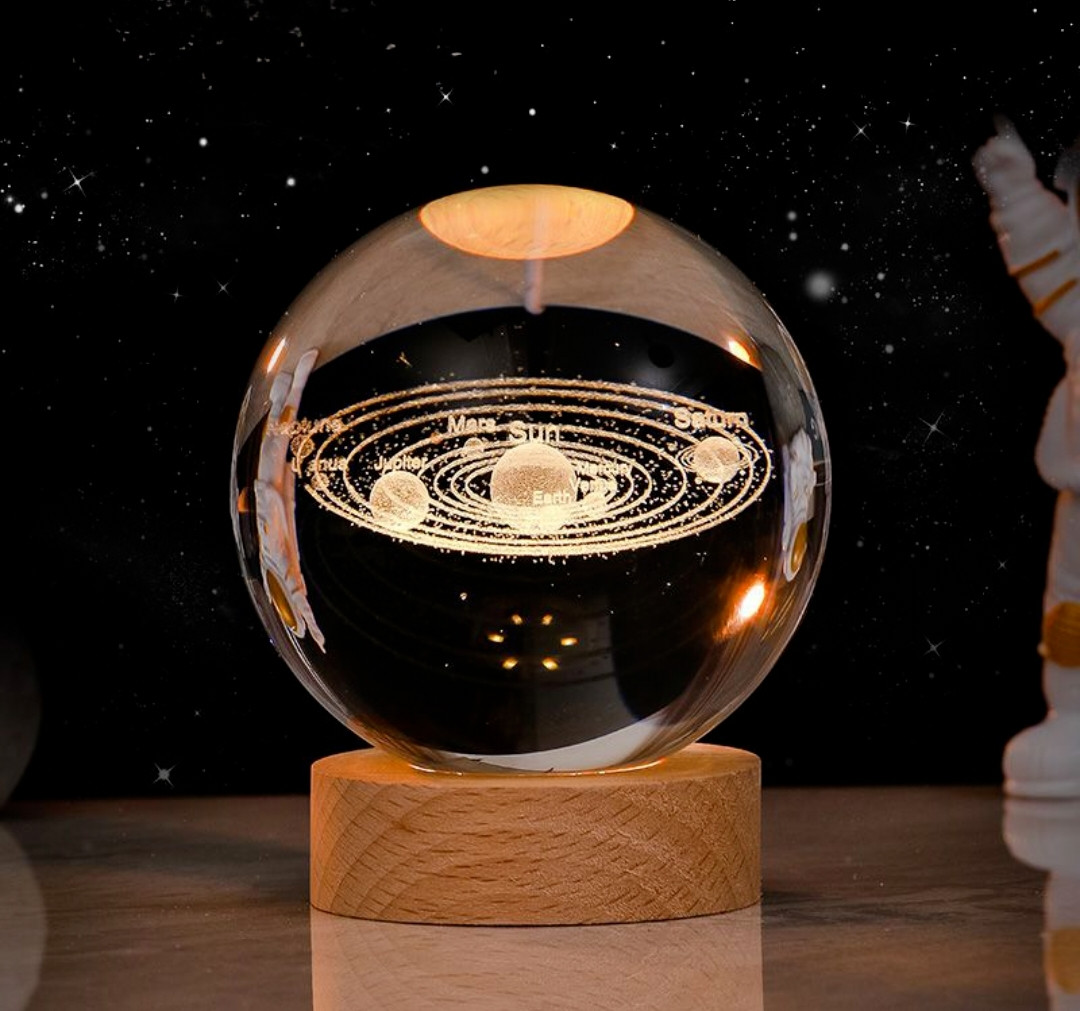 Ночник «Солнечная система» — это оригинальный элемент декора, который не только освещает пространство, но и погружает в атмосферу космоса. Изготовленный из дерева и стекла, он станет стильным акцентом в любом интерьере.