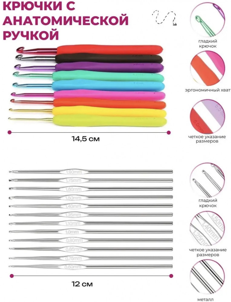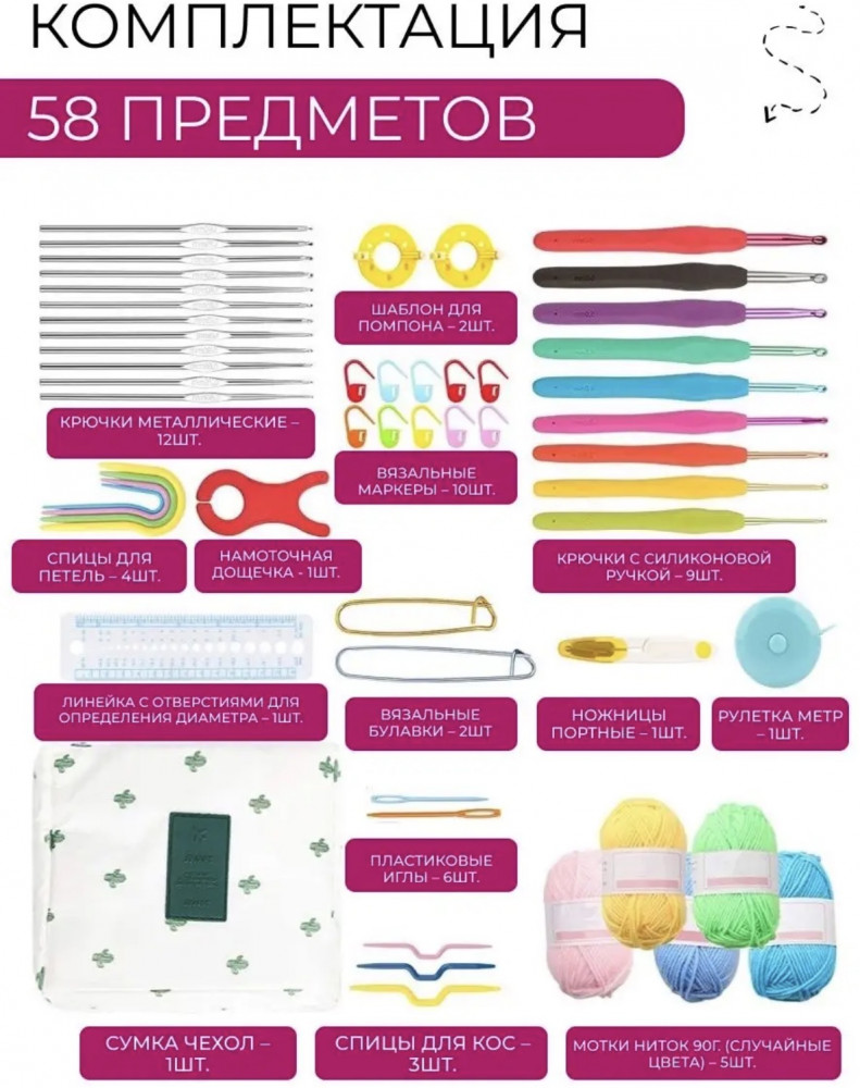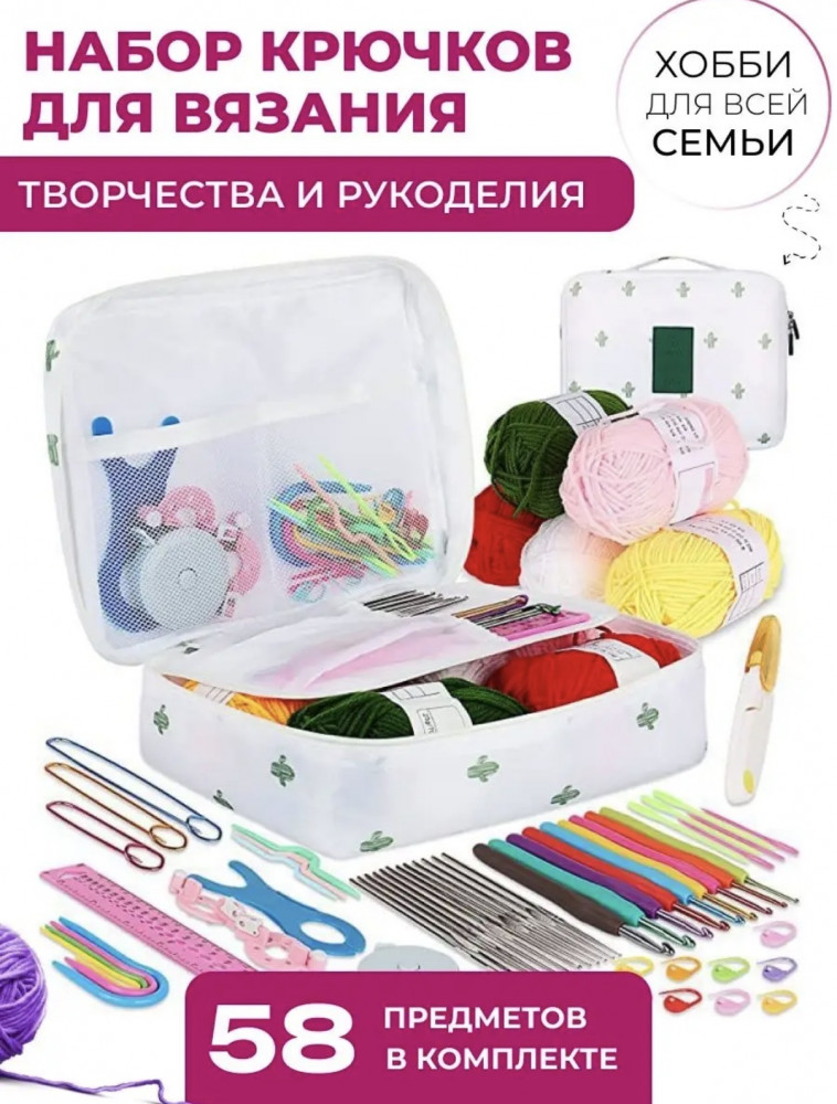 💳 Оплатить за товар можно при получении 🇰🇿 Есть бесплатная доставка по Казахстану от 1 дня 🎁 Копите бонусы с каждой покупки Подарочный набор для вязания крючком — 58 предметов в стильной сумке-органайзере. Всё, что нужно для вдохновения, у вас под рукой! Этот набор — настоящая находка для любителей вязания: в комплект входит 58 подобранных инструментов и аксессуаров, а также 5 мотков пряжи самых популярных и приятных цветов. Цвета пряжи могут отличаться от заявленных на фотографиях! |