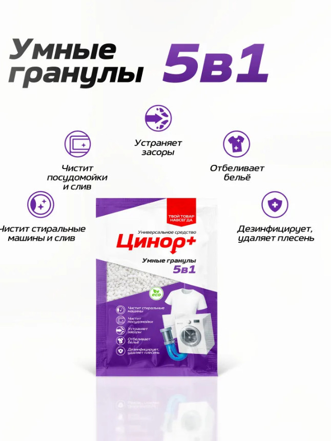 Цинор Средство от засоров для прочистки труб в активных гранулах 5 в 1 «Антизасор от жира и волосогон»-29% +63