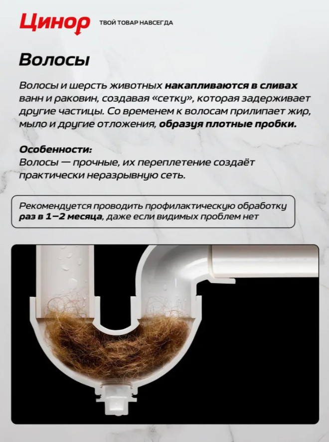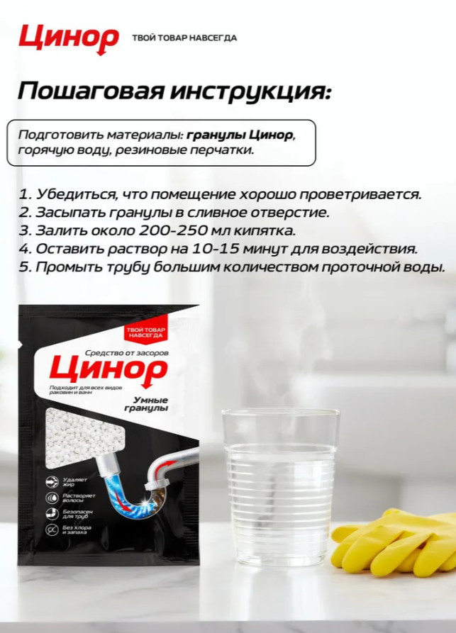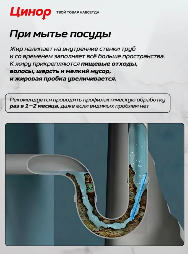 Цинор Средство от засоров для прочистки труб в активных гранулах «Антизасор от жира и волосогон»-29% +63