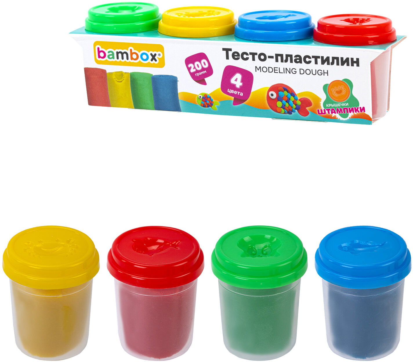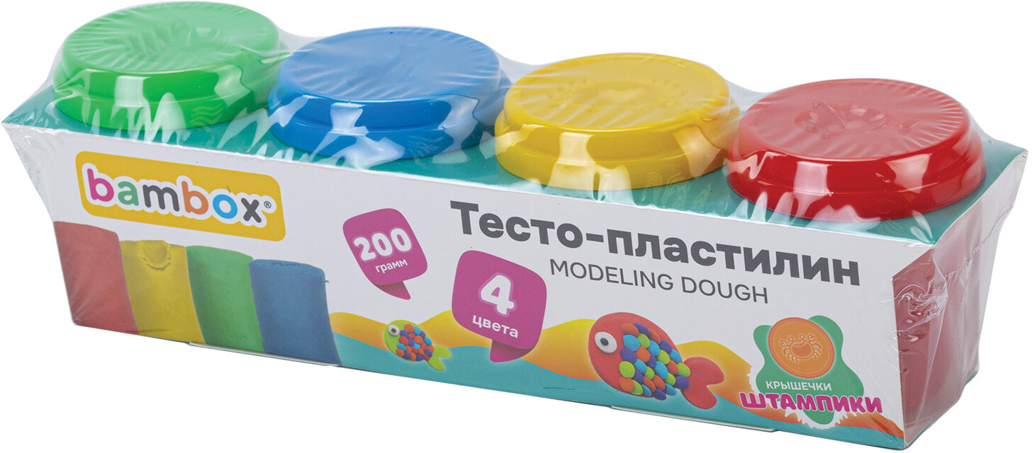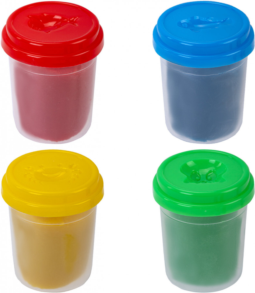 В набор входят 4 баночки теста для лепки ярких классических цветов: красный, синий, желтый, зеленый. Цвета можно смешивать между собой и получать новые оттенки. Пластилин легко разминается, не липнет к рукам. Лучший вариант для тех, кто только учится лепить из пластилина. На открытом воздухе затвердевает через 24 часа. Каждый цвет упакован в индивидуальный пластиковый стакан, с дополнительной защитной пленкой и с крышкой-штампиком, которая не позволяет тесту высыхать. Благодаря натуральной рецептуре тесто безопасно для детей.