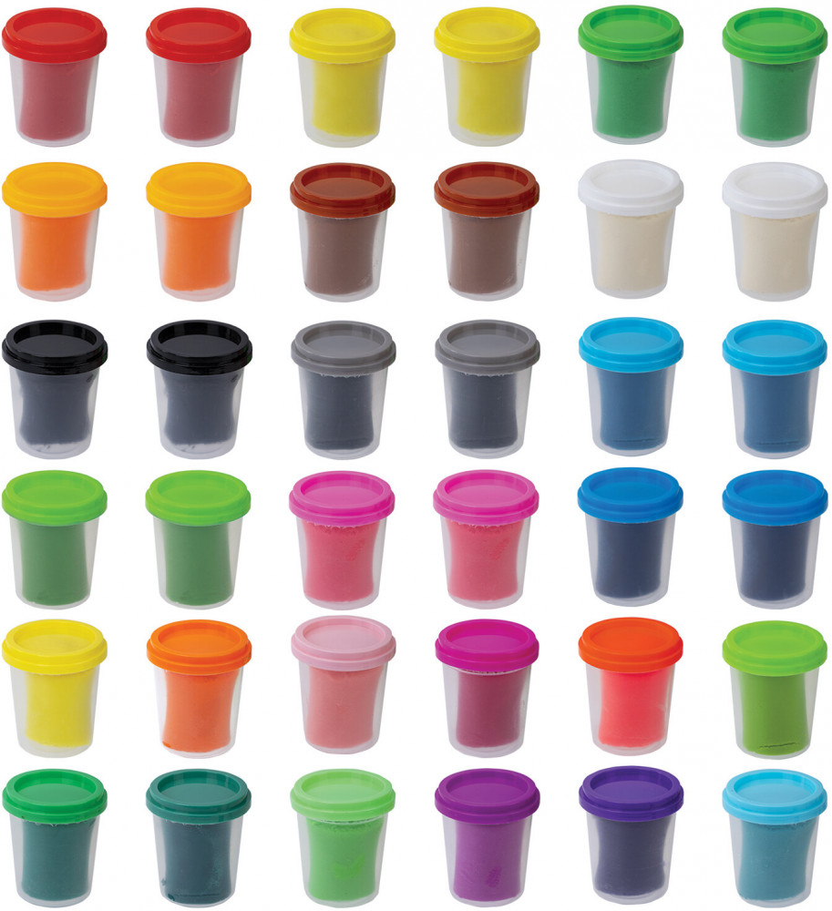 Цвета можно смешивать между собой и получать новые оттенки. Пластилин легко разминается, не липнет к рукам. Лучший вариант для тех, кто только учится лепить из пластилина. На открытом воздухе затвердевает через 24 часа. Каждый цвет упакован в индивидуальный пластиковый стакан, с дополнительной защитной пленкой и с крышкой-штампиком, которая не позволяет тесту высыхать. Благодаря натуральной рецептуре тесто безопасно для детей.
