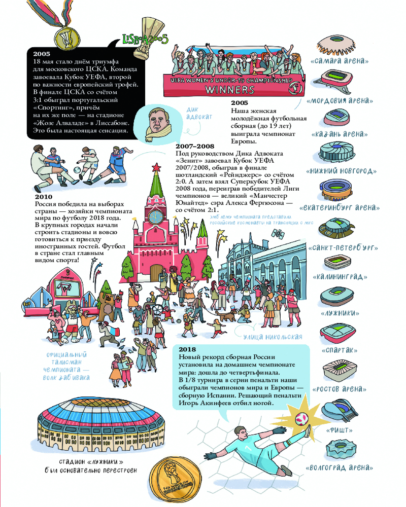 💳 Оплатить за товар можно при получении 🇰🇿 Есть бесплатная доставка по Казахстану от 1 дня 🎁 Копите бонусы с каждой покупки Красочное и увлекательное издание о самой популярной игре в мире. Книга расскажет о том, как появились первые правила, как развивалась игра на протяжении веков и как она стала такой, какой мы её знаем сегодня. Ты попадешь за кулисы футбольного мира и узнаешь, как устроены команды и стадионы, из чего состоит экипировка игроков, как проходит день матча и как стать профессиональным игроком. |