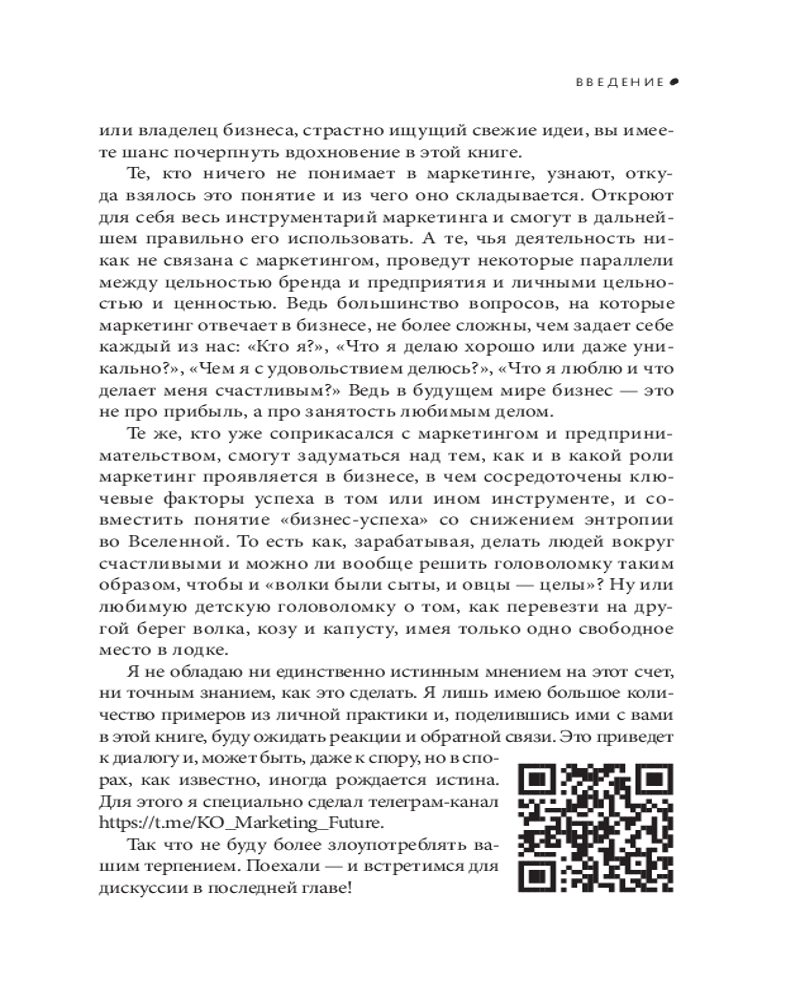Собственникам и директорам, руководителям маркетинга, продукта и проектов, специалистам по клиентскому опыту и коммуникациям, а также тем, кто только входит в профессию и хочет получить верный взгляд на маркетинг. Авторы прямо пишут: книга для открытых и любознательных — от подростка и инженера до владельца бизнеса.