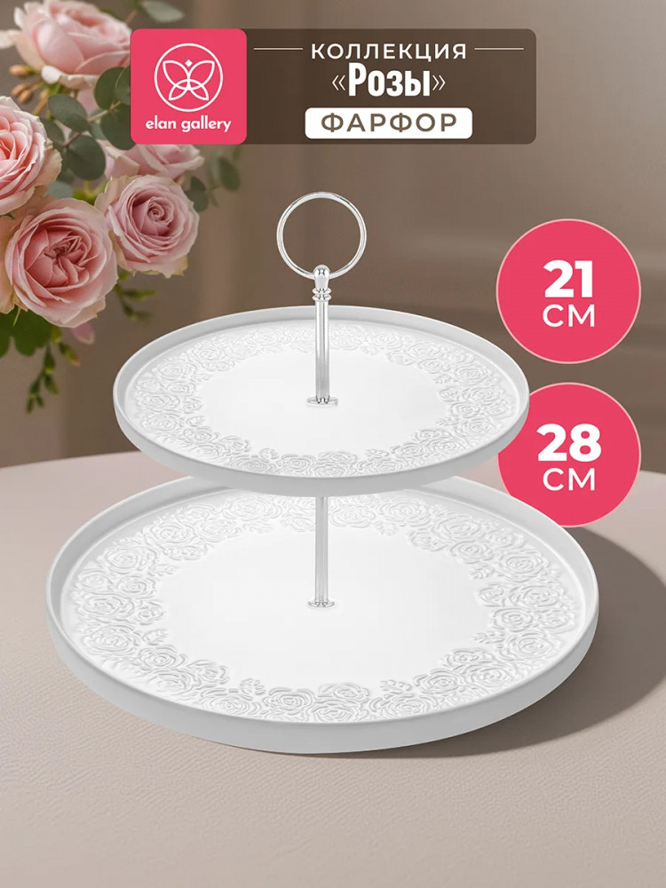 Elan Gallery Блюдо-этажерка двухъярусная «Розы»-25% +111