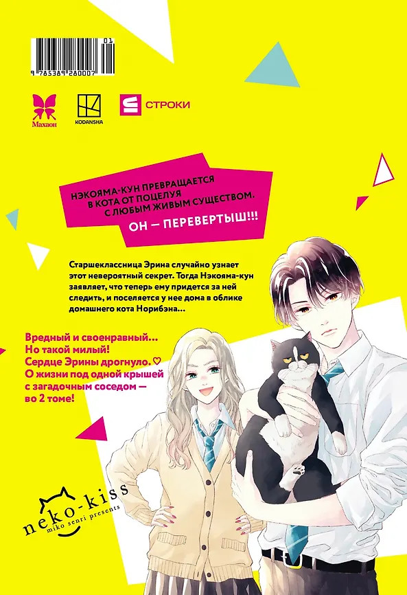 💳 Оплатить за товар можно при получении 🇰🇿 Есть бесплатная доставка по Казахстану от 1 дня 🎁 Копите бонусы с каждой покупки Серия: Махаон. Манга. Графические романы Нэкояма-кун превращается в кота при поцелуе с любым живым существом. Он — перевертыш! Старшеклассница Эрина случайно узнаёт этот невероятный секрет. Тогда Нэкояма-кун заявляет, что теперь ему придётся за ней следить, — и поселяется у неё дома в облике домашнего кота Норибэна... Вредный и своенравный... Но такой милый! Сердце Эрины дрогнуло. Жизнь под одной крышей с загадочным соседом — во втором томе! |
