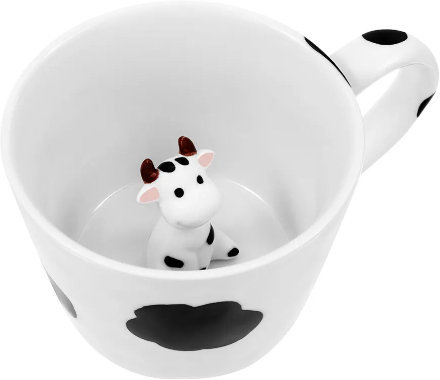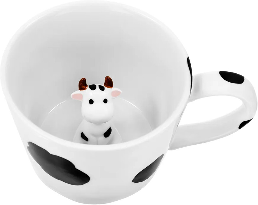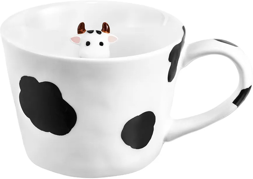 Кружка «Корова» от Elan Gallery предназначена для эстетичной сервировки вашего стола. Размер изделия — 14×10×7.5 см, объём — 300 мл. Выполнена из высококачественного белого фарфора. Он не впитывает цвет напитков и легко отмывается, благодаря чему надолго сохраняет свою белизну. Белая поверхность изделия украшена чёрными пятнами. На дне сидит очаровательная пятнистая коровка. Кофейная кружка поможет провести множество приятных завтраков с капучино и латте, а также уютные чайные вечера с конфетами, вафлями, другими десертами и сладостями. Подойдёт ценителям чая и кофе, которые любят пить из красивой и необычной посуды. Согрейтесь зимой любимым напитком: какао с маршмэллоу, ягодным чаем или горячим шоколадом. Летом освежитесь домашним лимонадом или морсом.