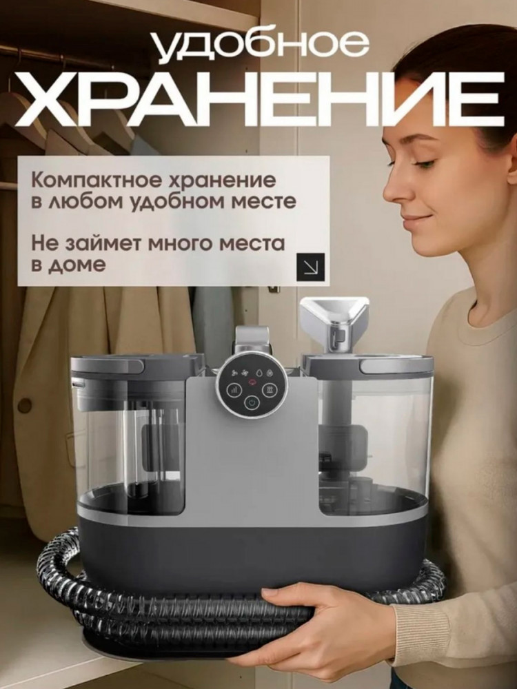 Модель оснащена вместительным резервуаром для чистой воды объёмом 1600 мл и ёмкостью для грязной воды 950 мл, что позволяет проводить уборку без частых остановок. Водяной фильтр надёжно удерживает пыль, шерсть и загрязнения, устраняет неприятные запахи, а горячий пар помогает бороться с пылевыми клещами и аллергенами. Мощность 3000 Вт обеспечивает глубокую и эффективную очистку даже сложных тканевых поверхностей — диванов, кресел, матрасов, штор и обивки автомобиля. Это одновременно мойка для ковров, пылесос-химчистка и мощный моющий пылесос для мебели в одном устройстве. Пылесос работает от сети, оснащён длинным кабелем, удобной ручкой для переноски и комбинированным управлением: сенсорным на корпусе и механическим на рукоятке. Он подойдёт как для личного пользования, так и в качестве практичного подарка, если нужен водяной пылесос, который действительно делает уборку проще и эффективнее.