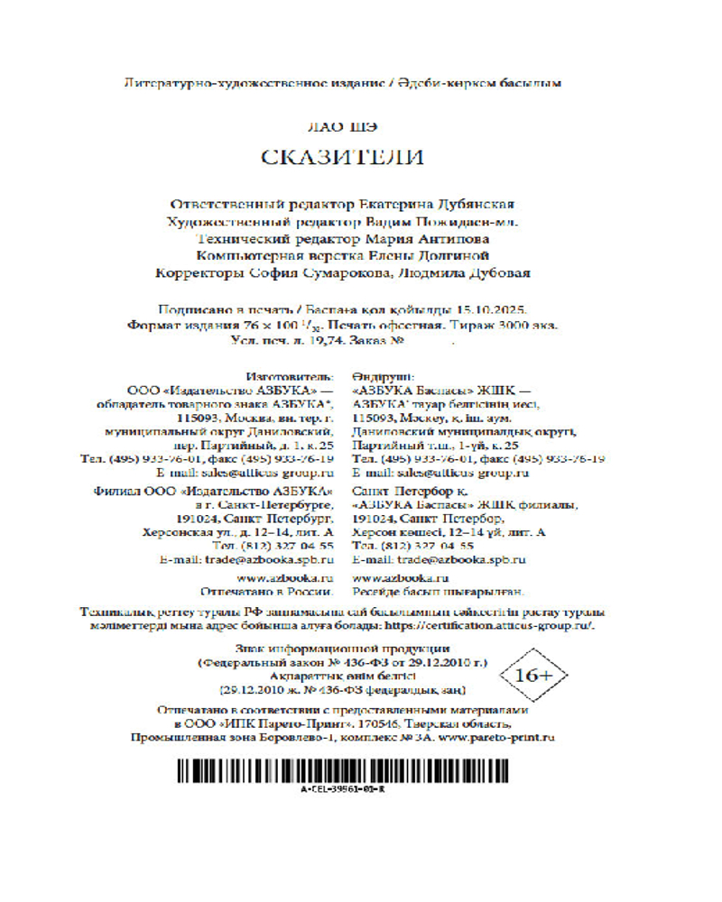 💳 Оплатить за товар можно при получении 🇰🇿 Есть бесплатная доставка по Казахстану от 1 дня 🎁 Копите бонусы с каждой покупки Серия: Изящная классика Востока «Сказители» — роман классика китайской литературы Лао Шэ. В центре действия — полная драматических событий жизнь народного сказителя Фан Баоцина и его приемной дочери Сюлянь. Сюлянь добра, талантлива и достаточно умна, чтобы понимать безрадостность уготованной ей судьбы на самом дне человеческого общества. Ведь она всего лишь проданная дочь нуждающихся родителей, и пусть Фан Баоцин души в ней не чает, вершина его заботы — пристроить талантливую девушку какому-нибудь богачу в наложницы. В ином случае она обречена торговать собой на улицах. Так заведено в мире уличных артистов. Поэтому попытки Сюлянь вырваться из порочного круга кажутся Фан Баоцину сумасбродными. |