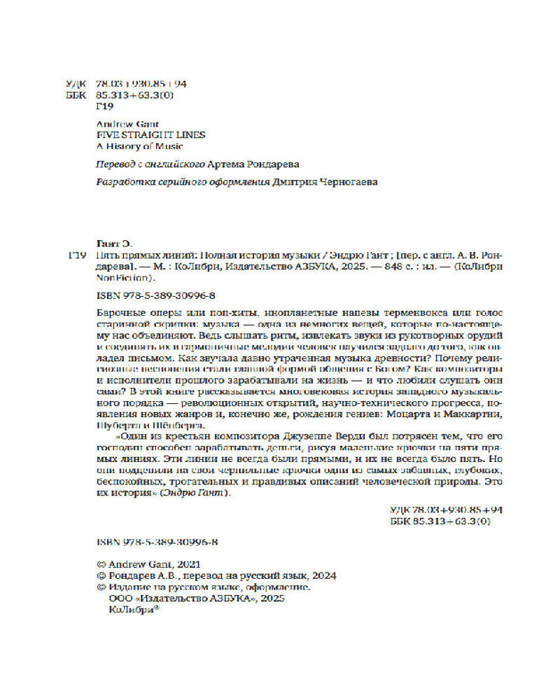 💳 Оплатить за товар можно при получении 🇰🇿 Есть бесплатная доставка по Казахстану от 1 дня 🎁 Копите бонусы с каждой покупки Серия: КоЛибри NonFiction Барочные оперы или поп-хиты, инопланетные напевы терменвокса или голос старинной скрипки: музыка — одна из немногих вещей, которые по-настоящему нас объединяют. Ведь слышать ритм, извлекать звуки из рукотворных орудий и соединять их в гармоничные мелодии человек научился задолго до того, как овладел письмом. Как звучала давно утраченная музыка древности? Почему религиозные песнопения стали главной формой общения с Богом? Как композиторы и исполнители прошлого зарабатывали на жизнь — и что любили слушать они сами? В этой книге рассказывается многовековая история западного музыкального порядка — революционных открытий, научно-технического прогресса, появления новых жанров и, конечно же, рождения гениев: Моцарта и Маккартни, Шуберта и Шёнберга. |