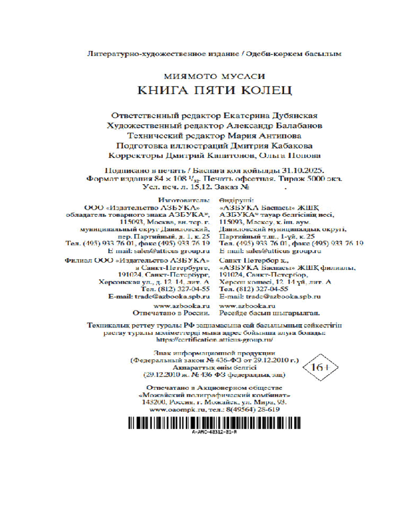 💳 Оплатить за товар можно при получении 🇰🇿 Есть бесплатная доставка по Казахстану от 1 дня 🎁 Копите бонусы с каждой покупки Серия: Мировая классика Произведения, вошедшие в настоящее издание, дают полное представление о древнем самурайском кодексе бусидо, освещая как его практическую сторону — воинское мастерство мечника, так и духовную основу, построенную на философии дзен-буддизма и кодексе воинской чести. |