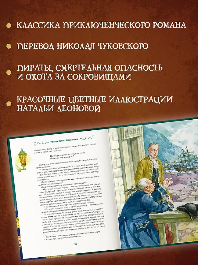 💳 Оплатить за товар можно при получении 🇰🇿 Есть бесплатная доставка по Казахстану от 1 дня 🎁 Копите бонусы с каждой покупки Серия: Шедевры детской литературы Легендарный роман Роберта Льюиса Стивенсона перенесёт читателей в мир пиратов, несметных богатств и смертельных опасностей. Когда юный Джим Хокинс находит в старом матросском сундуке карту сокровищ, он даже не представляет, какое невероятное приключение ему предстоит. На борту шхуны «Испаньола» юнга отправится к берегам таинственного необитаемого острова, раскроет зловещий заговор и в неравной схватке с безжалостными пиратами не раз спасёт жизнь своим друзьям! |
