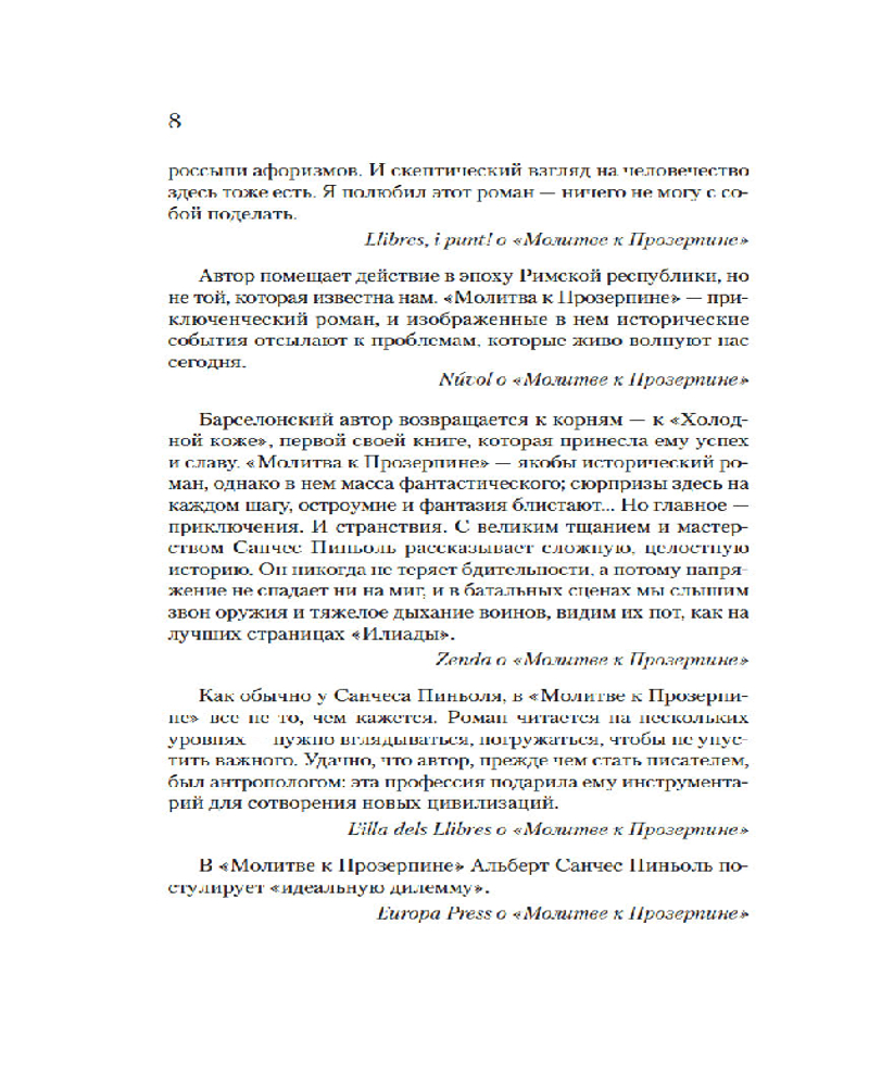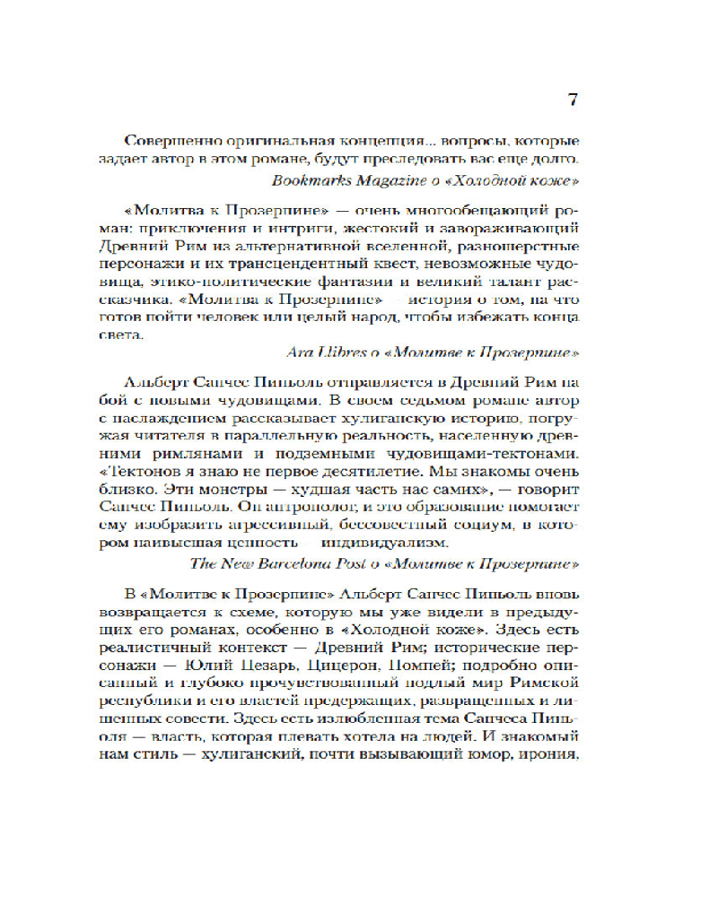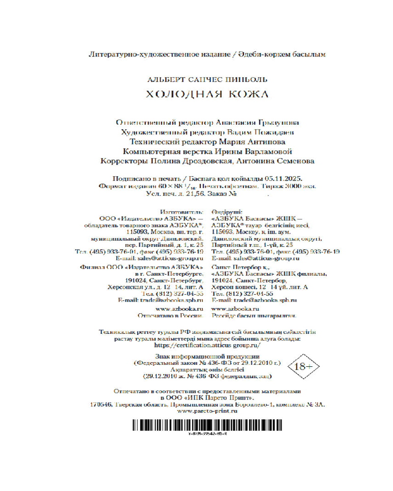 Альберт Санчес Пиньоль — ученый-антрополог, одна из крупнейших и наиболее самобытных звезд каталанской литературы. Он творец удивительных миров, в которых перемешивается реальное и фантастическое, а человек снова и снова сталкивается с Иными в лучших традициях Лавкрафта, Конрада и Стивенсона. «Холодная кожа», первый роман Санчеса Пиньоля, стал сенсацией в 2002 году, выдержал уже около тридцати переизданий в Испании и Каталонии, переведен на 37 языков и с успехом экранизирован Ксавье Жансом (в российском прокате этот фильм 2017 года выходил под названием «Атлантида»). Снова и снова с наступлением ночи дети моря выходят на берег, но кто здесь Иные — они, пришедшие из черноты океана, или мы, носители представлений о цивилизации, неспособные увидеть в Ином живого? |