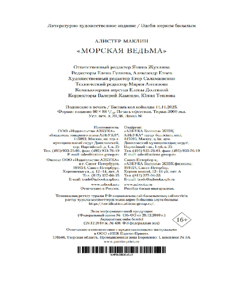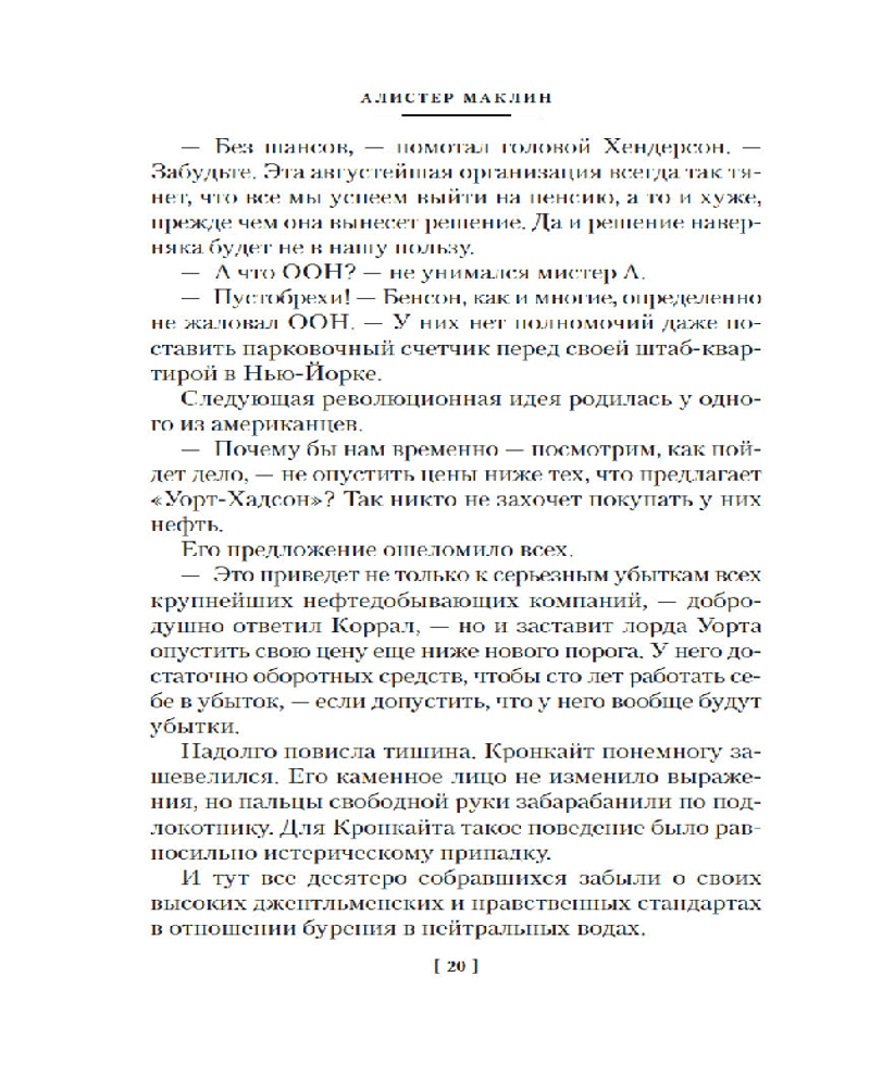 💳 Оплатить за товар можно при получении 🇰🇿 Есть бесплатная доставка по Казахстану от 1 дня 🎁 Копите бонусы с каждой покупки Серия: Мир приключений. Большие книги Алистер Маклин (1922–1987) — британский писатель, автор 28 остросюжетных романов и приключенческих рассказов, сценарист. Его имя широко известно читателям всего мира. Книги Маклина разошлись тиражом более 150 миллионов экземпляров, по его романам, сценариям и сюжетам было снято 18 фильмов. В 1983 году Университет Глазго присвоил писателю степень доктора литературоведения. |