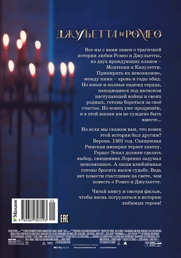 💳 Оплатить за товар можно при получении 🇰🇿 Есть бесплатная доставка по Казахстану от 1 дня 🎁 Копите бонусы с каждой покупки Серия: Махаон. Книги по фильмам Все мы с вами знаем о трагичной истории любви Ромео и Джульетты, из двух враждующих кланов — Монтекки и Капулетти. Примирить их невозможно, между ними — кровь и годы обид. Но юные и полные надежд сердца, находящиеся под натиском наступающей войны и своих родных, готовы бороться за своё счастье. Конец уже предрешён, и в этой жизни им не суждено быть вместе... |