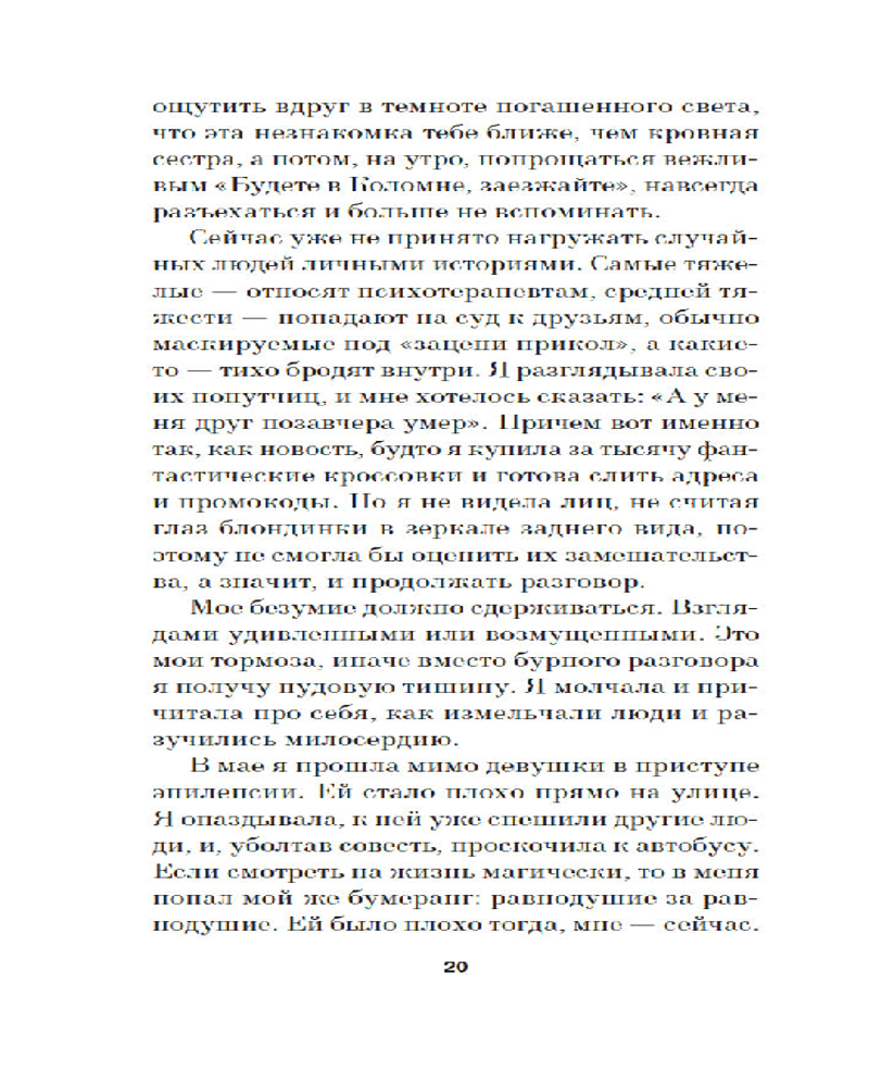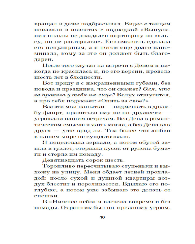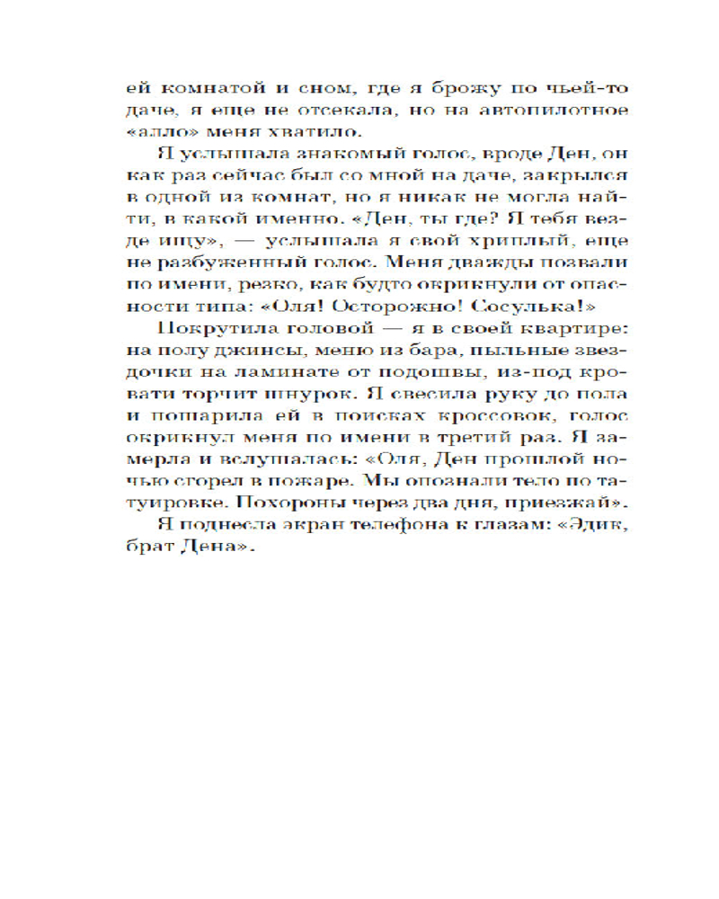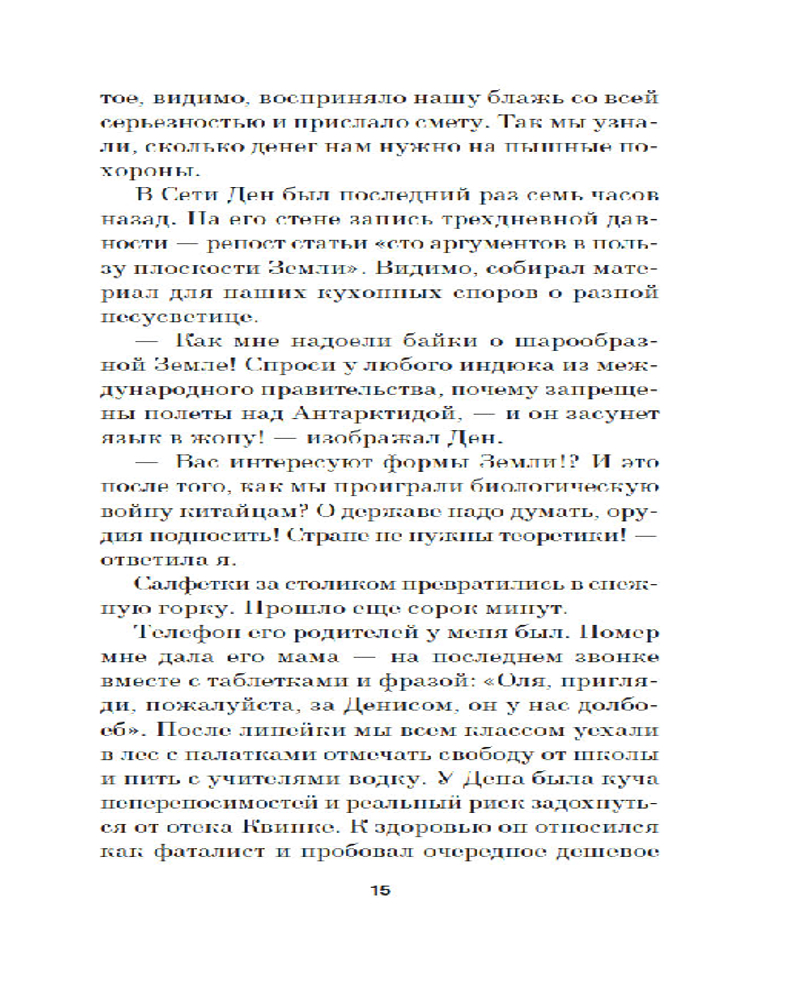 💳 Оплатить за товар можно при получении 🇰🇿 Есть бесплатная доставка по Казахстану от 1 дня 🎁 Копите бонусы с каждой покупки Серия: Азбука. Голоса Оля и Ден — добровольные изгои. Они дружат со школы, любят цифры, верят в приметы и имеют целый список странных увлечений и правил. Например, встречаться каждое седьмое число в секретном баре. Но однажды Ден не приходит, а наутро оказывается, что он поджег себя и квартиру. Оля не верит в версию с самосожжением и едет в родной город на похороны друга, чтобы разобраться в случившемся. Она взламывает его страницу и видит сообщение от незнакомки: «До встречи на Сириусе». Так начинается история, которая ведет в логово опасной тайны. «До встречи на Сириусе» — повесть о бегстве и избегании — прочь из ненавистного родного города, поглубже в уютный мир на двоих, — но также о храбрости и смелости встретиться лицом к лицу со всеми демонами и страхами (даже когда нет гарантии, что ты победишь). |