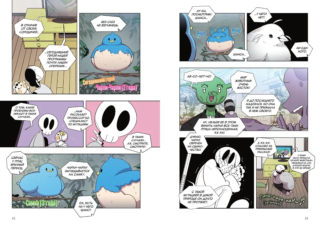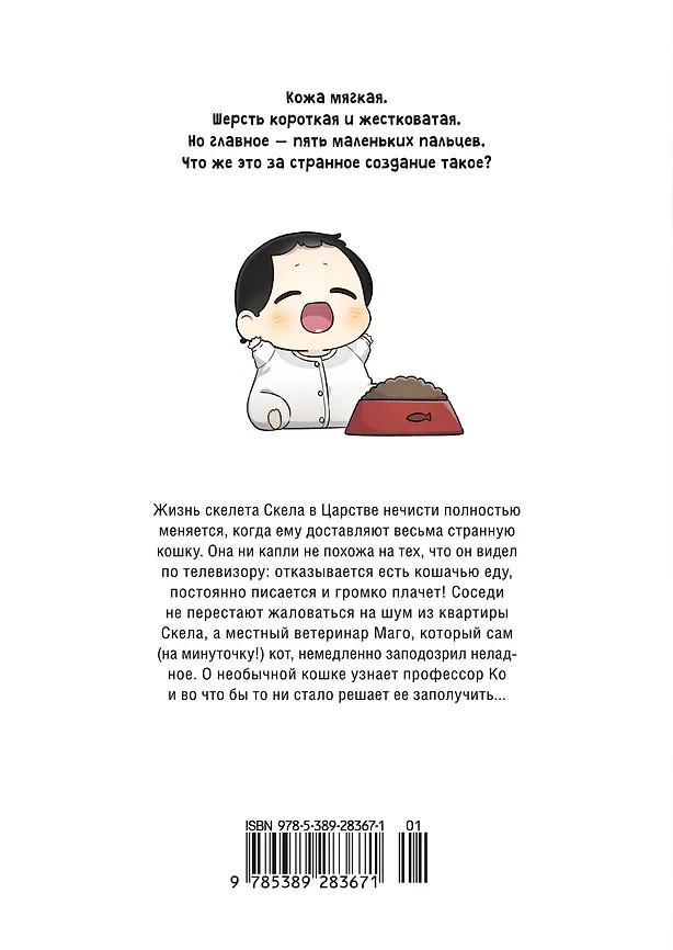 💳 Оплатить за товар можно при получении 🇰🇿 Есть бесплатная доставка по Казахстану от 1 дня 🎁 Копите бонусы с каждой покупки Серия: Графические романы Жизнь скелета Скела в Царстве нечисти приобретает новые краски, когда ему доставляют весьма странную кошку. Она ни капли не похожа на ту, что он видел по телевизору: отказывается есть кошачью еду, постоянно писается и громко плачет! Соседи не перестают жаловаться на шум из квартиры Скела, а местный ветеринар Маго, который сам (на минуточку!) кот, немедленно заподозревает неладное. Свои опасения он высказывает профессору Ко, специализирующейся на изучении мутаций. Чрезвычайно заинтересованная необычным животным, профессор жаждет во что бы то ни стало его заполучить… |