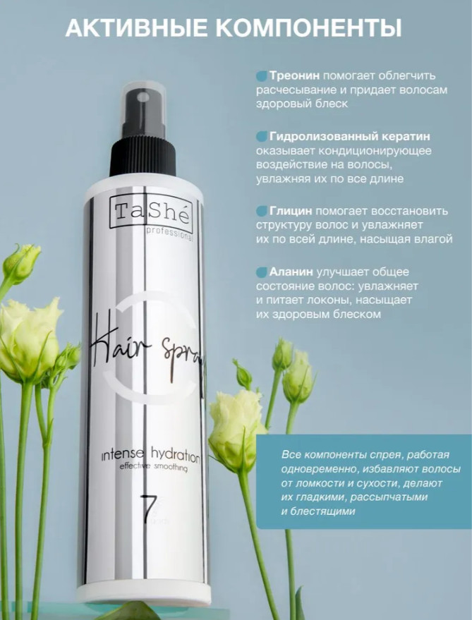 TaShe Professional Спрей для волос с термозащитой и парфюмированной отдушкойВ данный момент этот товар отсутствует в продаже. Возможно, у нас найдется аналогичный или похожий товар здесь. Спреи дли волос Tashe подходят для тонких, кудрявых, утративших объем по длине волос. Помогают восстановить, увлажнить, защитить локоны, облегчить расчесывание и обеспечить здоровый уход по росту волос. Обладают термозащитными свойствами. Несмываемый спрей для легкого расчёсывания волос — 7 полезных аминокислот в одном флаконе! Благодаря богатому аминокислотами и другими полезными веществами составу, многофункциональный спрей для волос эффективно справляется со своей главной задачей: увлажнение и разглаживание локонов, а также помогает справиться с выпадением волос. |
