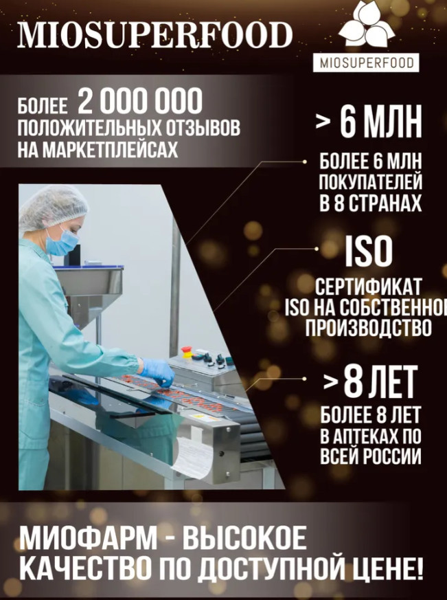 | Бренд для тех, кто выбирает здоровье, энергию и натуральность каждый день. В основе философии — сочетание аптечного качества и силы суперфудов, чтобы поддержка организма была не только эффективной, но и удобной. Продукция Miosuperfood отличается строгим контролем качества, официальной сертификацией и современным минималистичным дизайном упаковки, который подчеркивает надежность и заботу о потребителе. Это бренд, который объединяет доступность, эффективность и натуральность — делая заботу... |