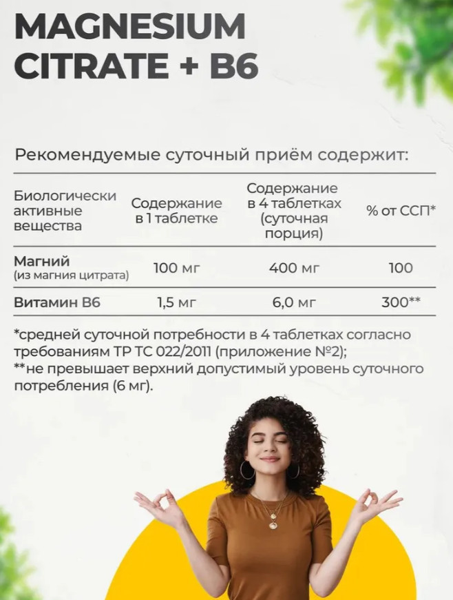 Цитрат магния от VitaMeal — это источник минерала магния в форме цитрата с добавлением витамина B6 (пиридоксина гидрохлорида) в таблетках. Магний является микроэлементом, который участвует во множестве реакций обмена веществ и входит в состав более чем 300 ферментов. Он играет важную роль в здоровом функционировании нервной системы, передаче нервных импульсов, работе сердца и сосудов, а также в расслаблении гладких мышечных волокон по всему телу. Дефицит магния может развиться из-за различных факторов, таких как недостаточное потребление круп и бобовых в ежедневном рационе, высокие физические и умственные нагрузки, сильный стресс, употребление алкоголя и кофеина в больших количествах, а также возрастные изменения. Недостаток магний b6 особенно ощущается на нервной системе, проявляясь хронической усталостью, перепадами настроения, нарушениями сна и тревожностью без видимых причин. Магний в6 от Витамил: успокоительное средство на основе магния цитрат и витамина б6. Для предотвращения неприятных симптомов, а также для улучшения общего самочувствия и качества активной жизни, рекомендуется принимать магний цитрат, магне в6 MAGNESIUM + Vitamin B6 от VitaMeal. Эта формула содержит магния цитрат с витамином в6 — важный микроэлемент, который участвует в реакциях обмена веществ, а также витамин б6, который усиливает его эффект.