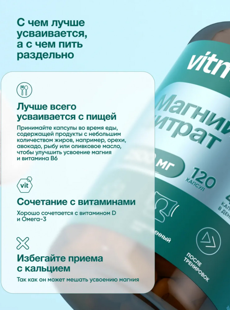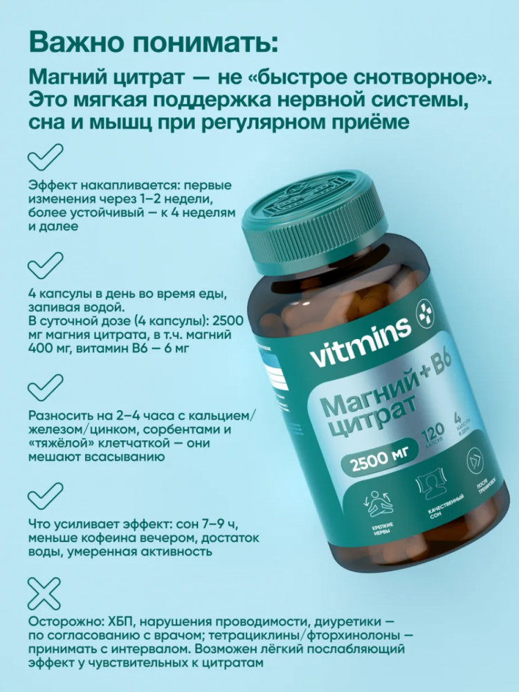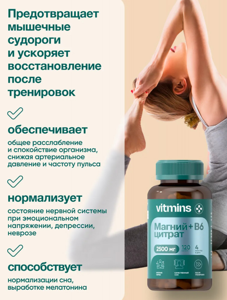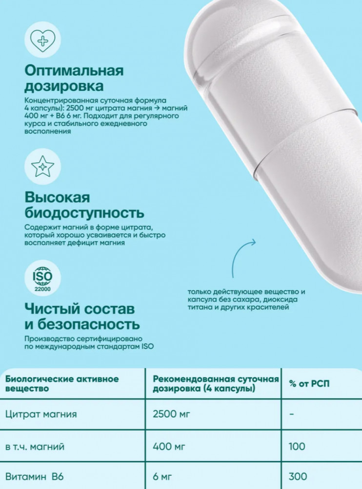 Vitmins Магний цитрат + B6-27% +55 магний состав одна капсула большой объем