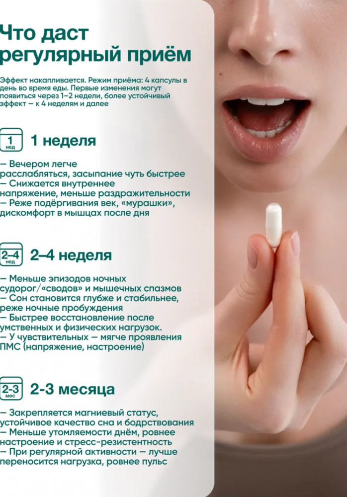 Магний понравился. Удобно что пить по одной капсуле в день. И тем более такой большой обьем- на 4 месяца 👍