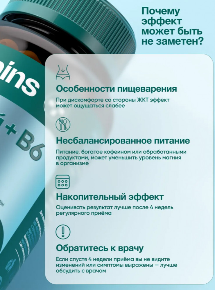 💳 Оплатить за товар можно при получении 🇰🇿 Есть бесплатная доставка по Казахстану от 1 дня 🎁 Копите бонусы с каждой покупки Магний цитрат и магний В6 от Vitmins — это эффективное средство для поддержания здоровья и устойчивости к стрессу. В его сбалансированный состав входит магний (Mg), жизненно важный минерал, который обеспечивает энергию для мышц и сердца, улучшает работу нервной системы и настроение. Вместе с витамином B6 (Б6), добавка способствует нормализации обмена веществ и поддержанию активного образа жизни. Магний B6 может быть использован как снотворное средство, а также является мощным антистрессовым и антидепрессивным средством. Magnesium citrate помогает улучшить состояние кишечника и ЖКТ, нормализовать аппетит, поднять настроение и снизить усталость. Благодаря своему составу цитрат магния способен улучшить работу мозга, укрепить иммунитет и стимулировать набор мышечной массы. Он обеспечивает необходимую поддержку для спортивных людей, ускоряя восстановление мышц после физических нагрузок и избавляя от судорог Комплекс содержит идеальную балансированную комбинацию magnesium и витамина B6, которая способствует улучшению общего состояния организма и метаболизма. |