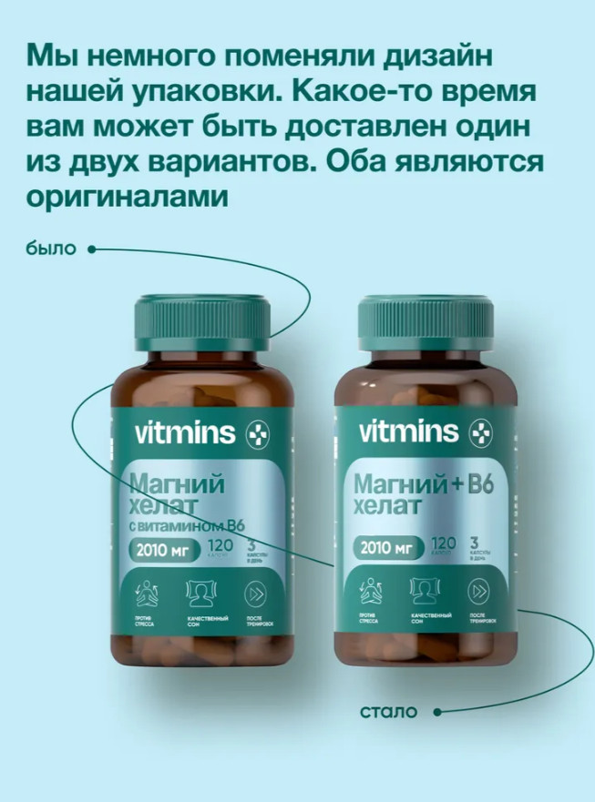 Хелатная форма магния, в частности магний глицинат и бисглицинат, обеспечивает лучшую усвояемость и эффект, так как магний связывается с органическими соединениями, что облегчает его транспортировку и поглощение клетками. Добавка vitmins с магнием хелатом и витамином В6 способствует улучшению энергетического обмена, снижению уровня усталости и поддержанию нормального психоэмоционального состояния.