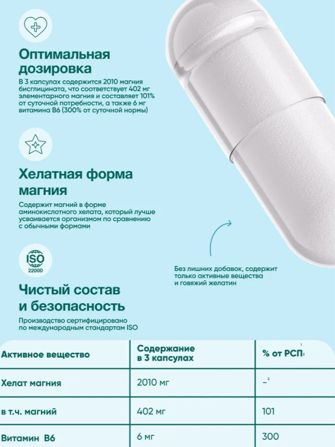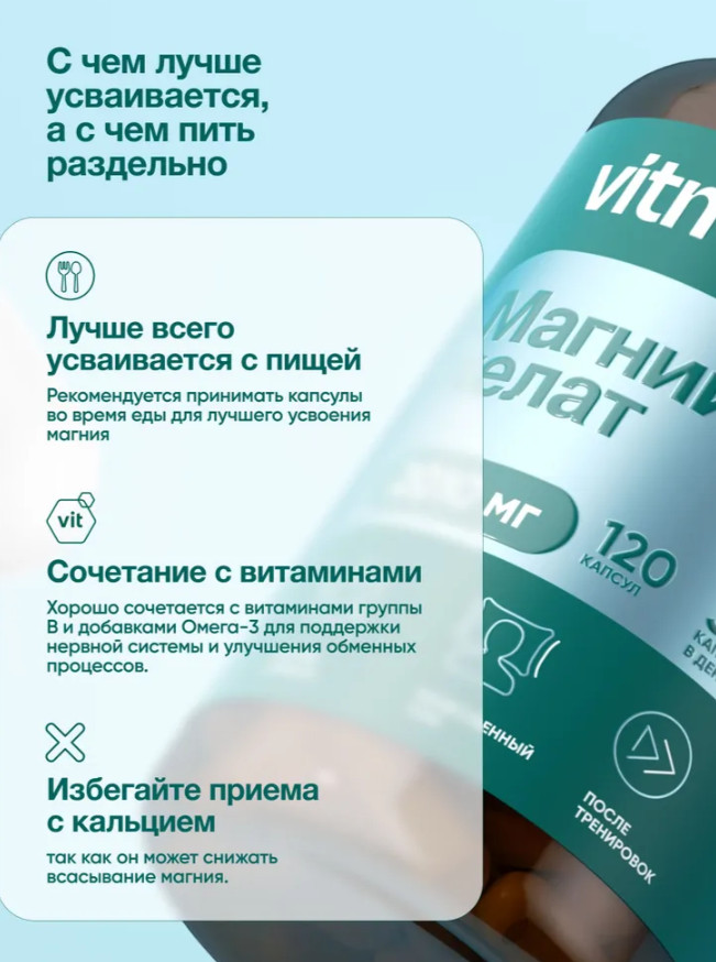Исследования показывают, что хелатный магний, особенно в форме бисглицината, может уменьшать симптомы стресса, тревожности и депрессии, оказывая успокоительное действие. Употребление магний глицината способствует расслаблению мышц и снижению напряжения. Для достижения максимальной пользы рекомендуется совмещать прием добавки vitmins с разнообразным и сбалансированным питанием, богатым витамина |