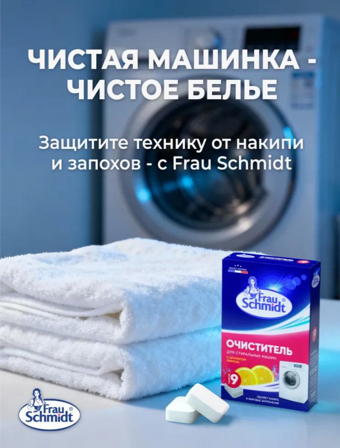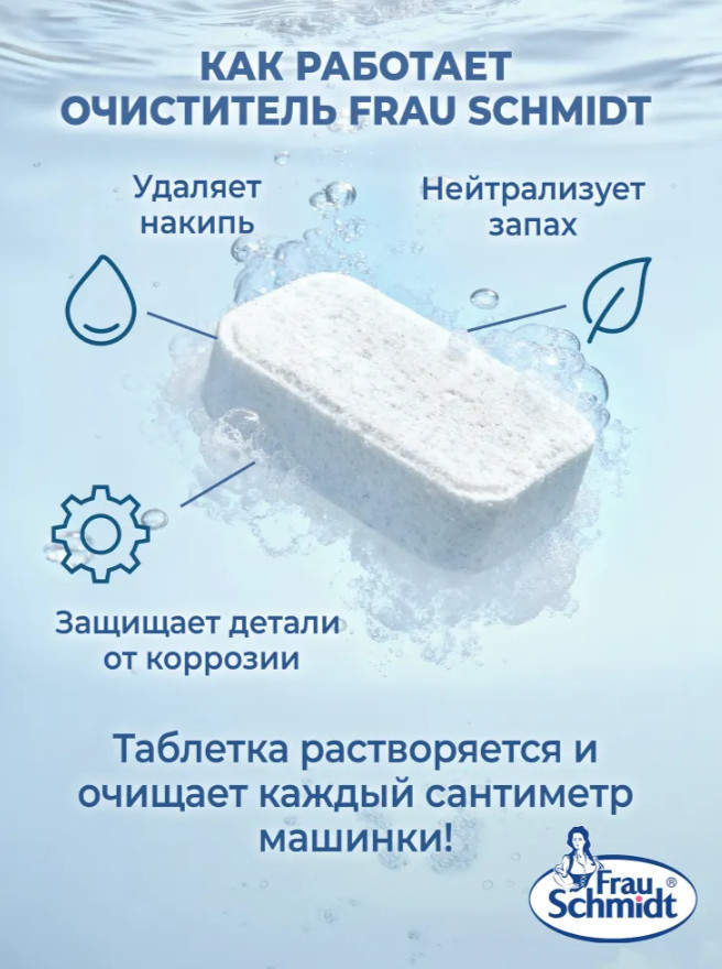Очиститель Фрау Шмидт — незаменимый помощник в вашем доме и займет достойное место среди хозяйственных товаров, которыми вы пользуетесь на кухне и ванной для поддержания вашей техники в исправном состоянии.