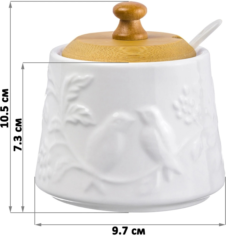 Elan Gallery Сахарница с ложкой на деревянной подставке «Птички на ветке»уценка -40% +81