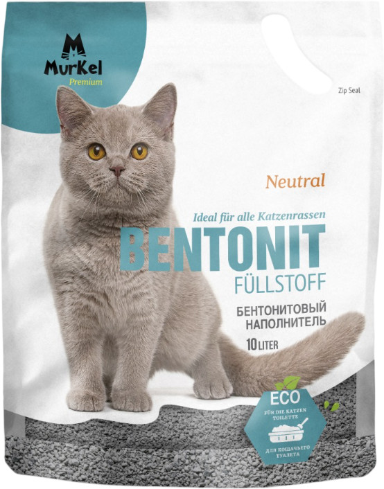 Бентонит — натуральное вещество, глина, преимуществом которого является высокая гигроскопичность и поглощение запахов. Наполнители из этого материала наиболее распространённые. При контакте с кошачьей мочой бентонитовый наполнитель комкуется, образуя плотную массу, которую легко удалить из лотка специальной лопаточкой. Остальная часть наполнителя остается в лотке. Выпускается в виде зёрен, похожих на гравий.
