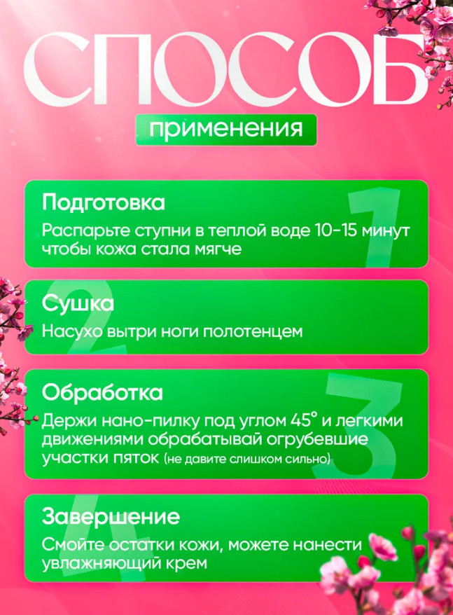 💳 Оплатить за товар можно при получении 🇰🇿 Есть бесплатная доставка по Казахстану от 1 дня 🎁 Копите бонусы с каждой покупки Представляем вашему вниманию уникальную нано-терку для ног из закалённого стекла — инновационное решение для безупречного ухода за кожей стоп! Что такое нано-терка? Это специальный инструмент для удаления огрубевших участков кожи стоп. Благодаря своему уникальному покрытию, состоящему из мельчайших частиц диоксида кремния (SiO₂), нано-терка обеспечивает деликатное и эффективное удаление натоптышей, мозолей и ороговевших клеток эпидермиса. Регулярное использование помогает поддерживать кожу гладкой, мягкой и ухоженной. |