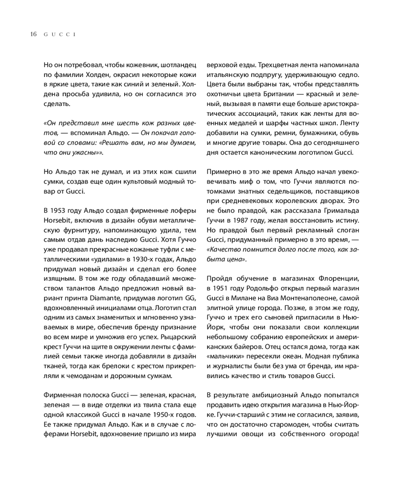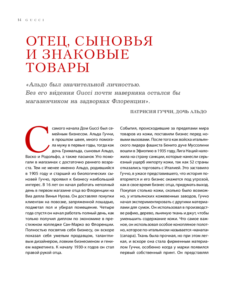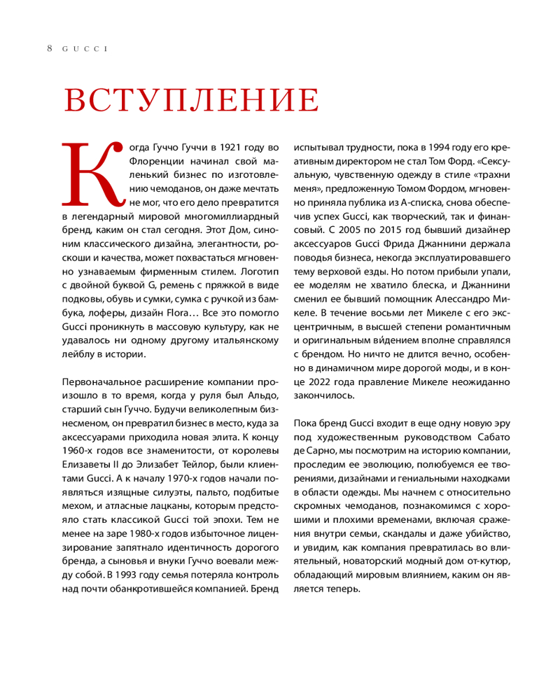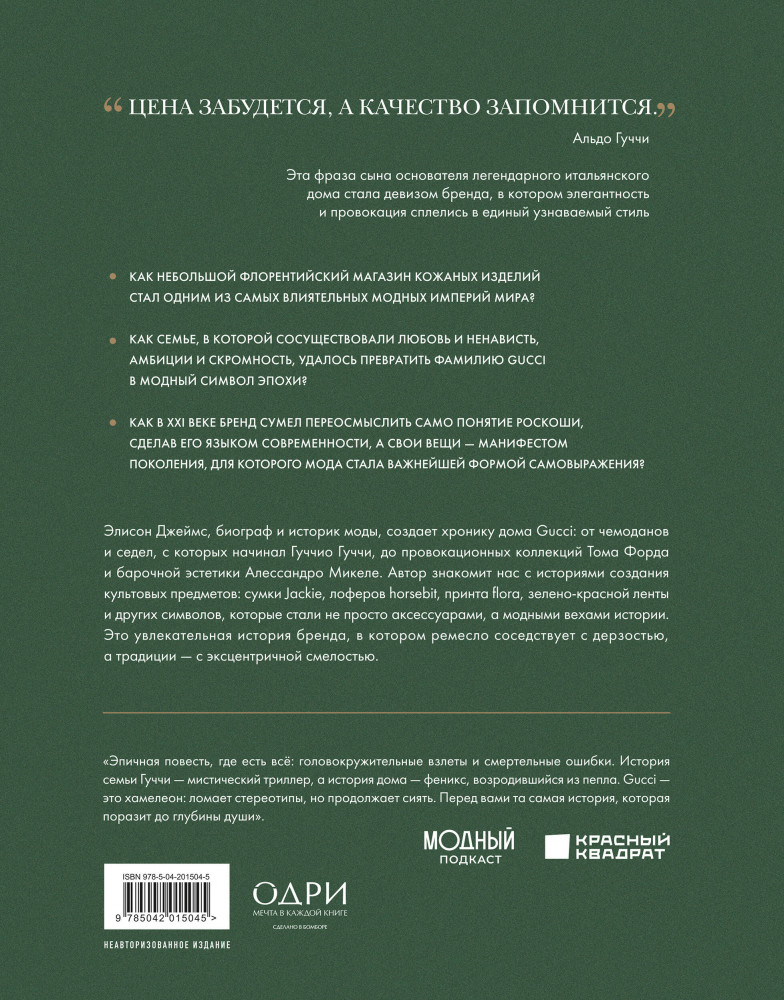 Как небольшой флорентийский магазин кожаных изделий стал одним из самых влиятельных модных империй мира? Как семье — в которой переплетались любовь и ненависть, амбиции и скромность — удалось превратить фамилию Gucci в модный символ эпохи? Как в XXI веке бренд сумел превратить роскошь в язык современности, а свои вещи — в манифест поколения, для которого мода стала важнейшей формой самовыражения?