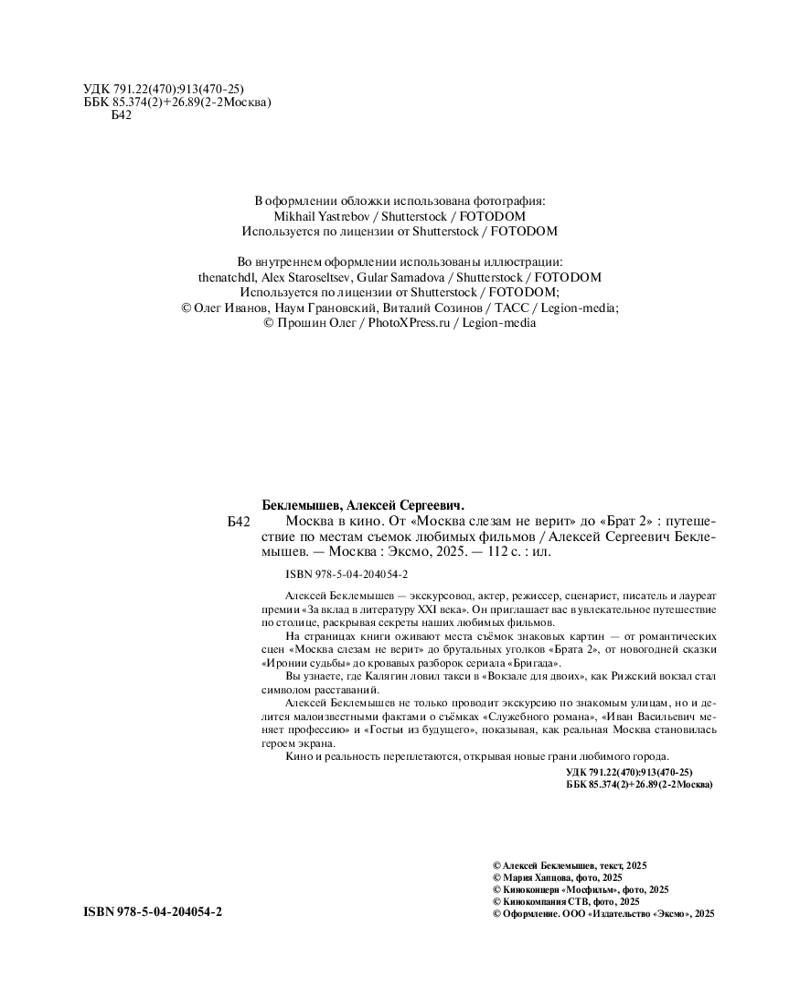 💳 Оплатить за товар можно при получении 🇰🇿 Есть бесплатная доставка по Казахстану от 1 дня 🎁 Копите бонусы с каждой покупки Серия: Москва. Лучший город Земли Ваш билет на уникальную киноэкскурсию по Москве! Вы когда-нибудь задумывались, сколько историй хранят московские улицы, запечатленные на кинопленке? Представьте, что вы можете пройтись по ним снова, но уже глазами великих режиссеров, увидеть знакомые места совершенно под новым углом и подслушать закулисные байки со съемок! Знакомьтесь с человеком, который станет вашим проводником в этом захватывающем путешествии, — Алексеем Беклемышевым. Он не просто сам актер, режиссер, писатель и драматург, но истинный влюбленный в Москву и ее кинематографическую душу. Алексей десятилетиями собирал по крупицам истории и факты о том, как столица оживала на большом экране. Его взгляд — это уникальное сочетание глубокого анализа, теплой ностальгии и остроумных наблюдений. Он расскажет о ваших любимых фильмах такие подробности, о которых вы и не догадывались! |