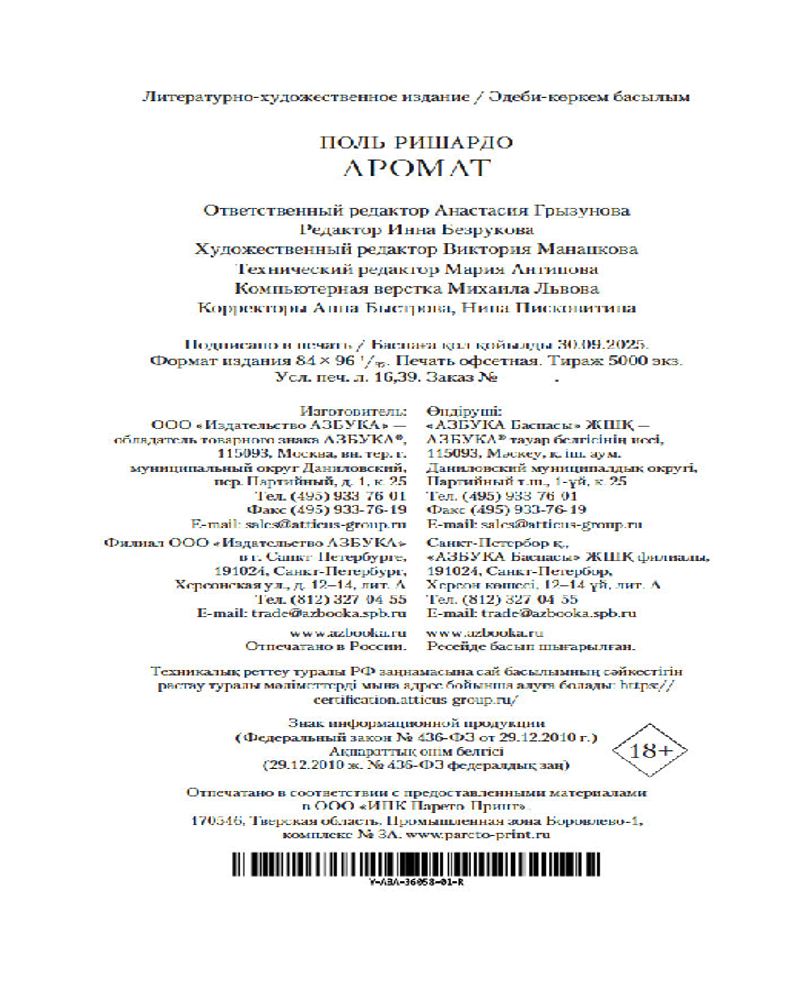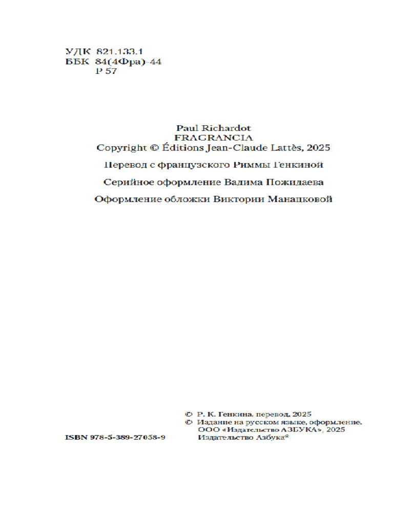 Серия: Азбука-бестселлер Дебютный детективный роман 2025 года, написанный профессиональным французским парфюмером и продолжающий традиции «Парфюмера» Патрика Зюскинда! Только достоверная парфюмерная наука и головокружительный сюжет!