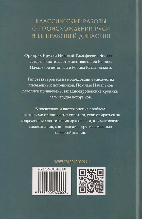💳 Оплатить за товар можно при получении 🇰🇿 Есть бесплатная доставка по Казахстану от 1 дня 🎁 Копите бонусы с каждой покупки Серия: История происхождения Руси В книге публикуются классические работы о происхождении Руси и ее правящей династии. Фридрих Крузе и Николай Тимофеевич Беляев — авторы гипотезы, отождествляющей Рюрика Начальной летописи и Рорика Ютландского. Гипотеза опирается на исследование многих письменных источников. Помимо Начальной летописи, привлечены западноевропейские хроники, саги, труды историков. В послесловии дается оценка проблем, с которыми сталкивается гипотеза, если привлечь современные достижения археологии, климатологии, языкознания, социологии и других. |