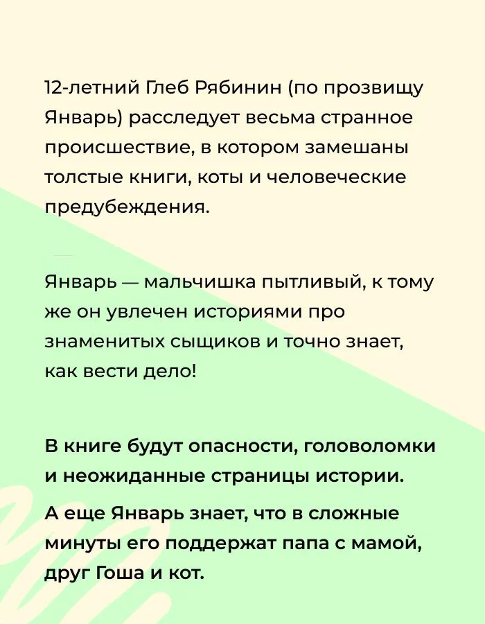 💳 Оплатить за товар можно при получении 🇰🇿 Есть бесплатная доставка по Казахстану от 1 дня 🎁 Копите бонусы с каждой покупки Серия: Современная детская книга Обстоятельства, при которых когда-то он стал Январем, Глеб Рябинин вспоминать не любил. Но сейчас ему это имя даже нравилось. Сколько на свете Глебов? А Январь только один! Январь зачитывается книжками про знаменитых сыщиков, но однажды ему самому приходится становится настоящим детективом. |