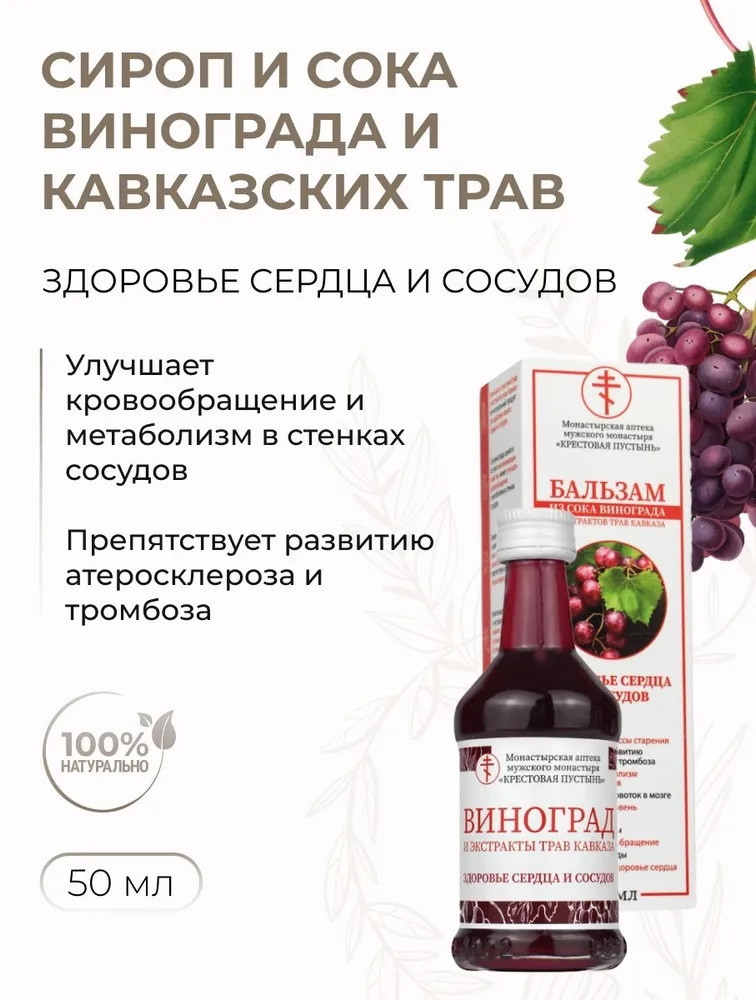Монастырская аптека Бальзам из сока винограда «Для здоровья сердца и сосудов»