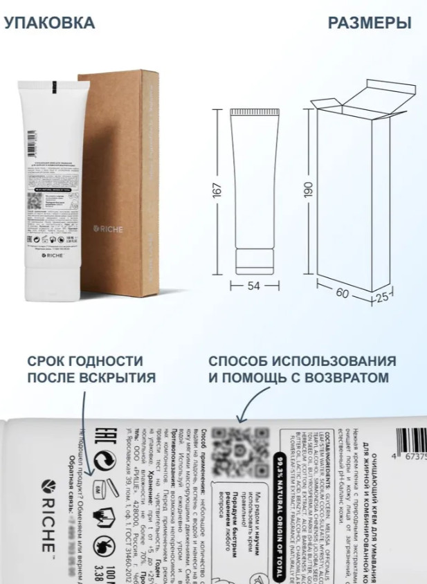 Riche Cosmetics Мягкий крем для умывания лица с маслом ши и хлопком