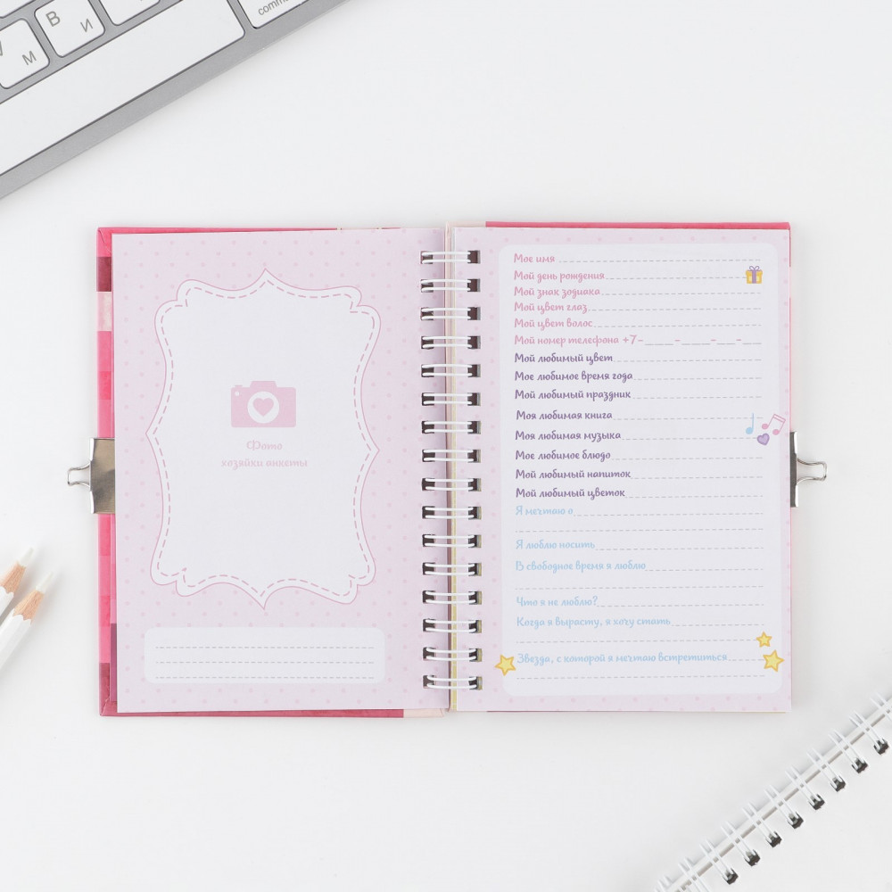 Дневник на резинкеДневник в клеткуФитнес дневникБлокнот с замкомДневник с замкомДневник для записейДневник для путешествийДневник в точкуЛичный дневник в твёрдой обложкеАнкета с опросникомАнкета с тестамиДневник-анкета для друзейАнкета для друзейДневник с датамиАнкета-дневникДневник с кармашкомДневник для девочекДневник читательский