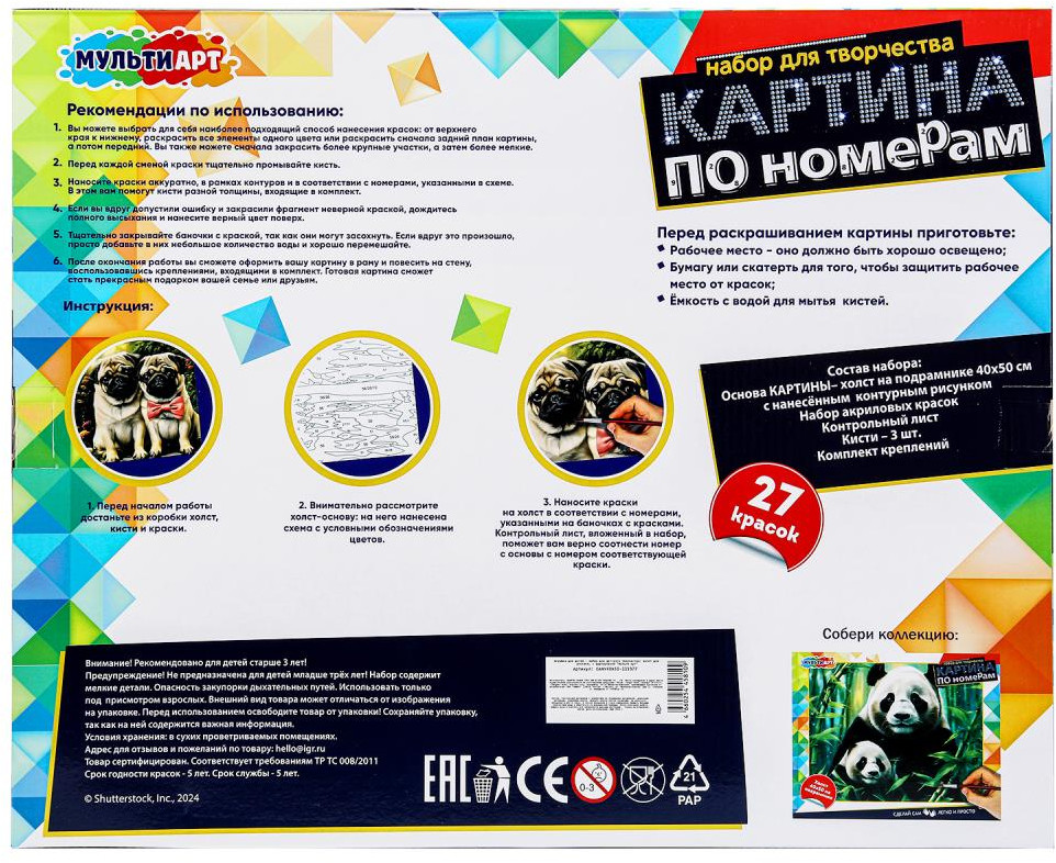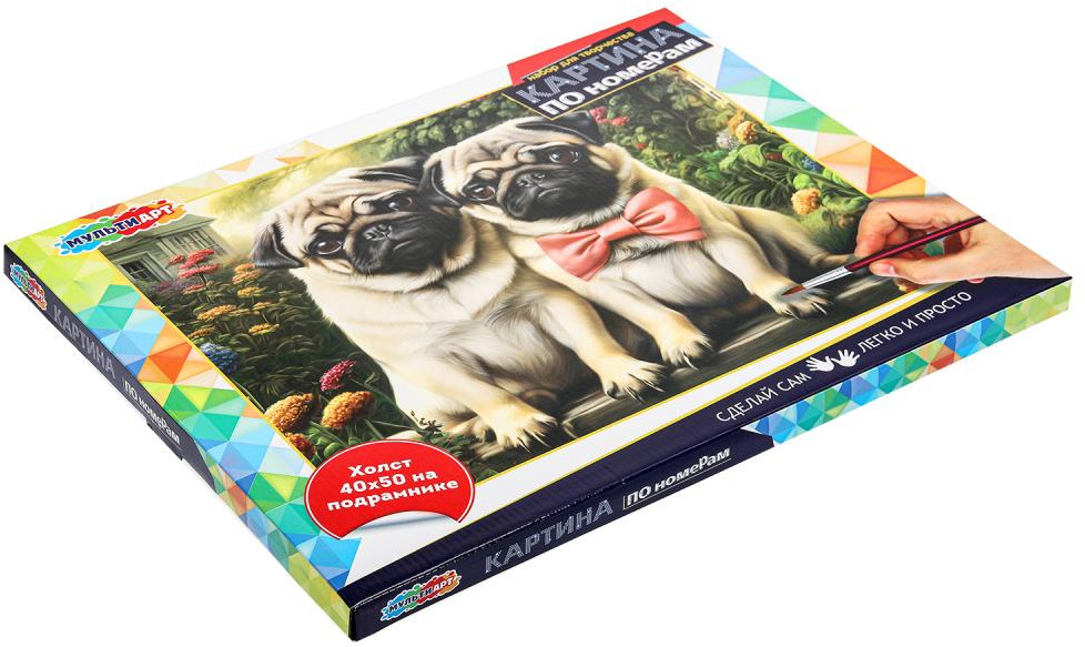 Multi Art Картина по номерам «Мопсы»уценка -40% +128
