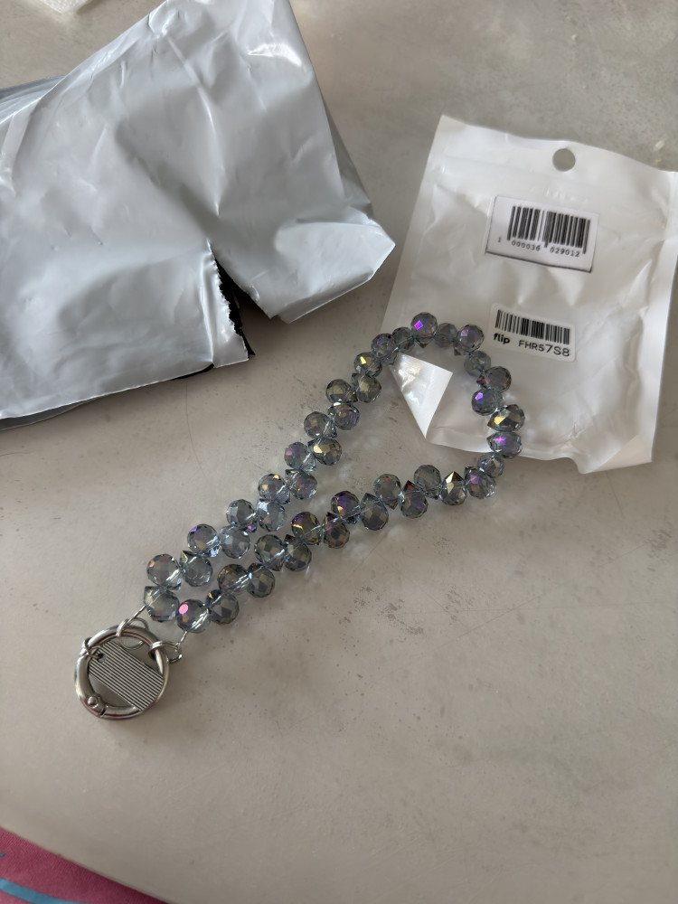 Прикольная штучка, мне понравилась. Выглядит вроде как стекло. Ещё не решила, оставить для телефона или на сумку повесить, но на солнышке блестит красиво.