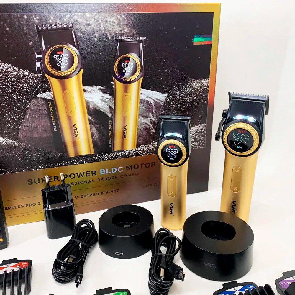 | VGR Набор для стрижки Barber Comb V-001&V-977 Gold+700 (бонусов)