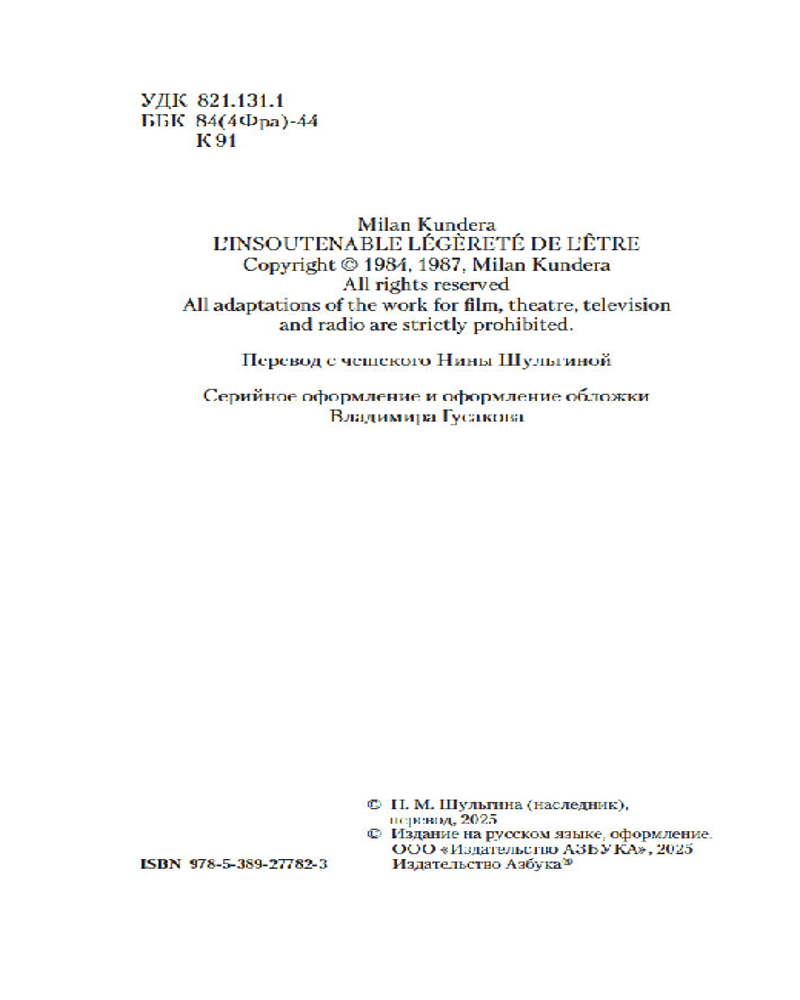 💳 Оплатить за товар можно при получении 🇰🇿 Есть бесплатная доставка по Казахстану от 1 дня 🎁 Копите бонусы с каждой покупки Серия: Настроение читать «Невыносимая легкость бытия» — самый знаменитый роман Милана Кундеры, которым зачитываются все новые и новые поколения читателей, открывающие для себя вершины литературы XX века. Книга Кундеры о любви и непростых человеческих отношениях. Автор пишет о непримиримой двойственности тела и души, о лабиринте возможностей, по которому блуждают герои, проживая свою единственную жизнь... |
