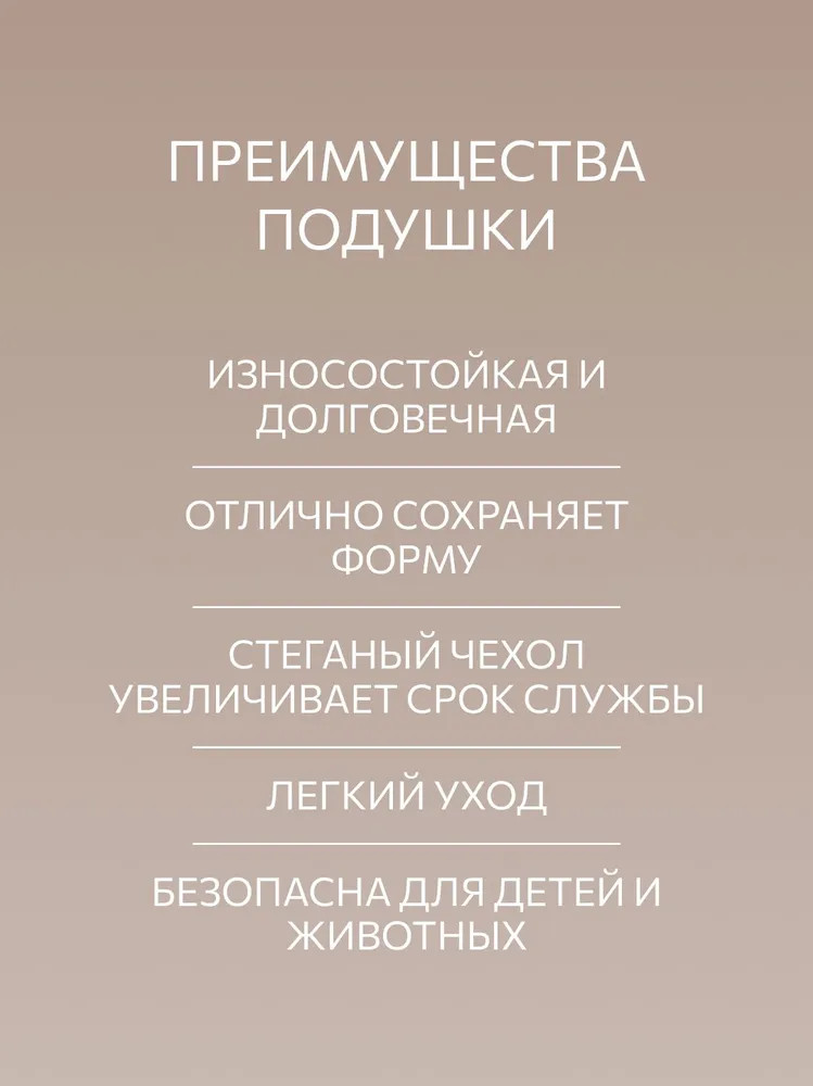 Подушки с наполнителем из силиконизированного волокна — это современное решение для комфортного и здорового сна. Наполнитель отличается отличной вентиляцией, не сбивается в комки, является гипоаллергенным и безопасным для здоровья, а также хорошо сохраняет форму даже после стирки. Благодаря этим свойствам подушка остаётся упругой, лёгкой и воздушной на протяжении всего срока использования.